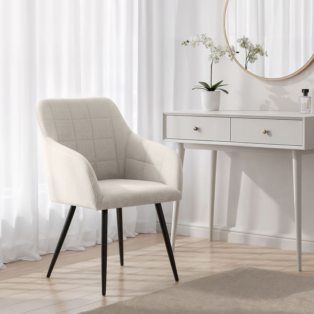 Sedia imbottita LUXANO con gambe nere e tessuto Lumos crema. .. altro