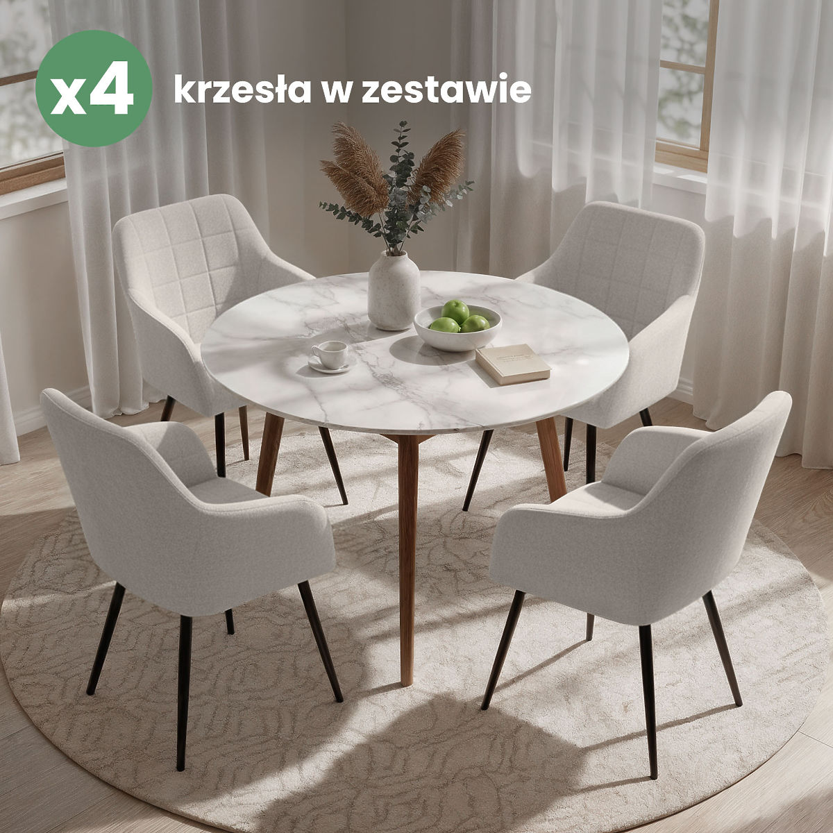 Le sedie imbottite combinano un aspetto estetico con il comfort d'uso e si adattano bene a diversi stili di interni. La loro forma universale le rende adatte per sale da pranzo, soggiorni o uffici. Sono disponibili in due varianti di materiale: in tessuto Lumos o in velluto.