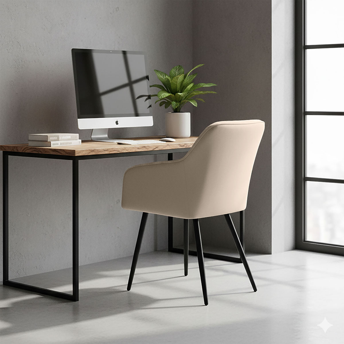 Sedia da pranzo imbottita LUXANO con rivestimento beige e gambe nere. .. altro