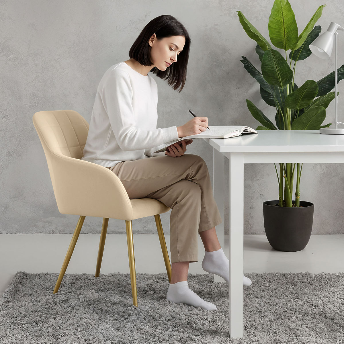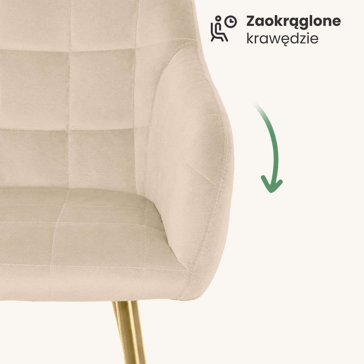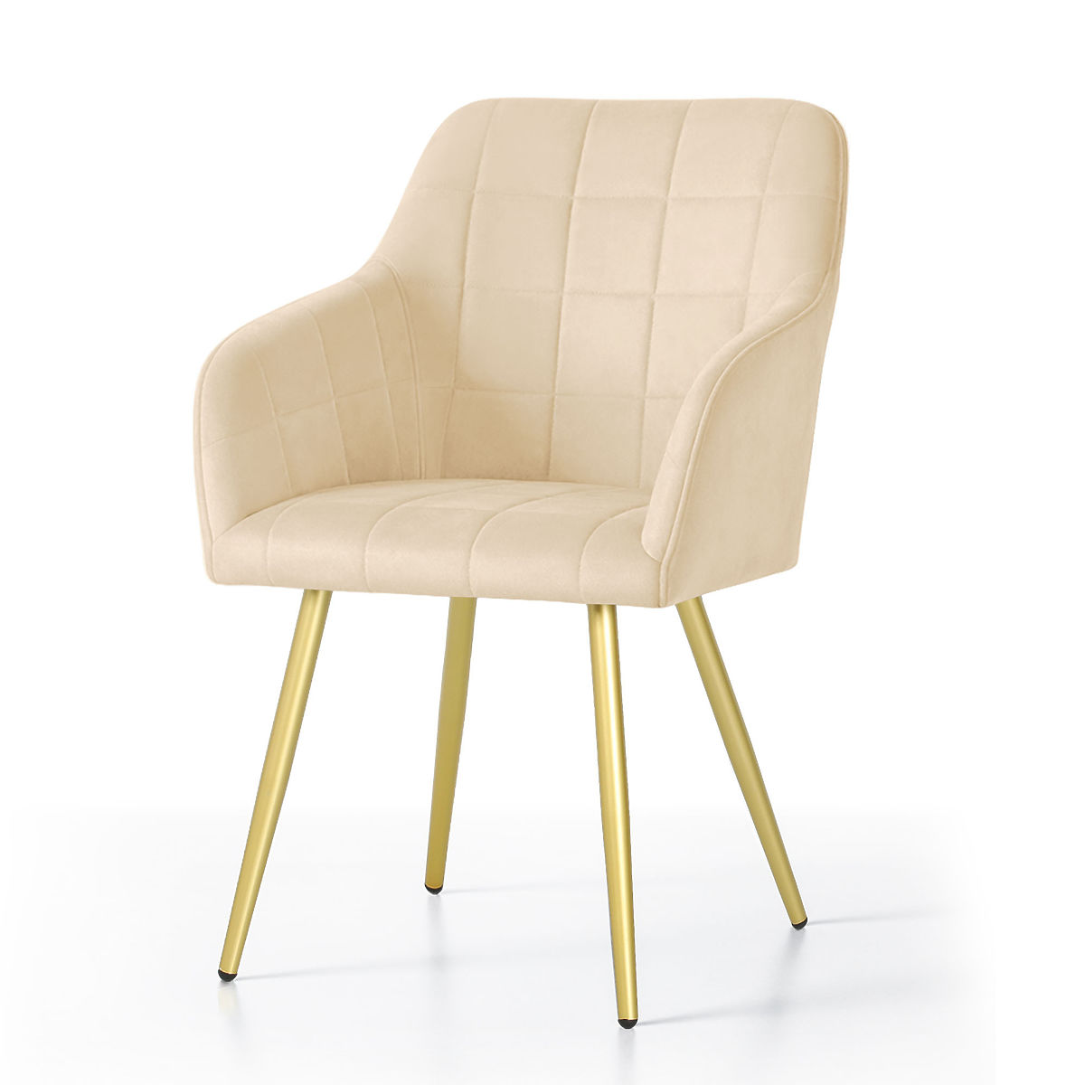 Sedia da pranzo imbottita beige con gambe dorate e cuciture quadrate. .. altro