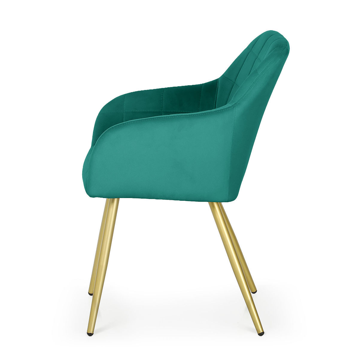 Sedia da pranzo imbottita in velluto verde smeraldo con gambe dorate. .. altro