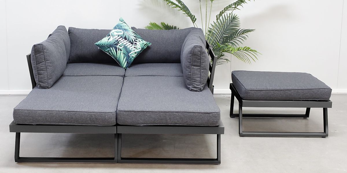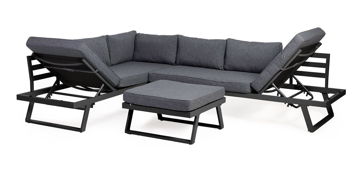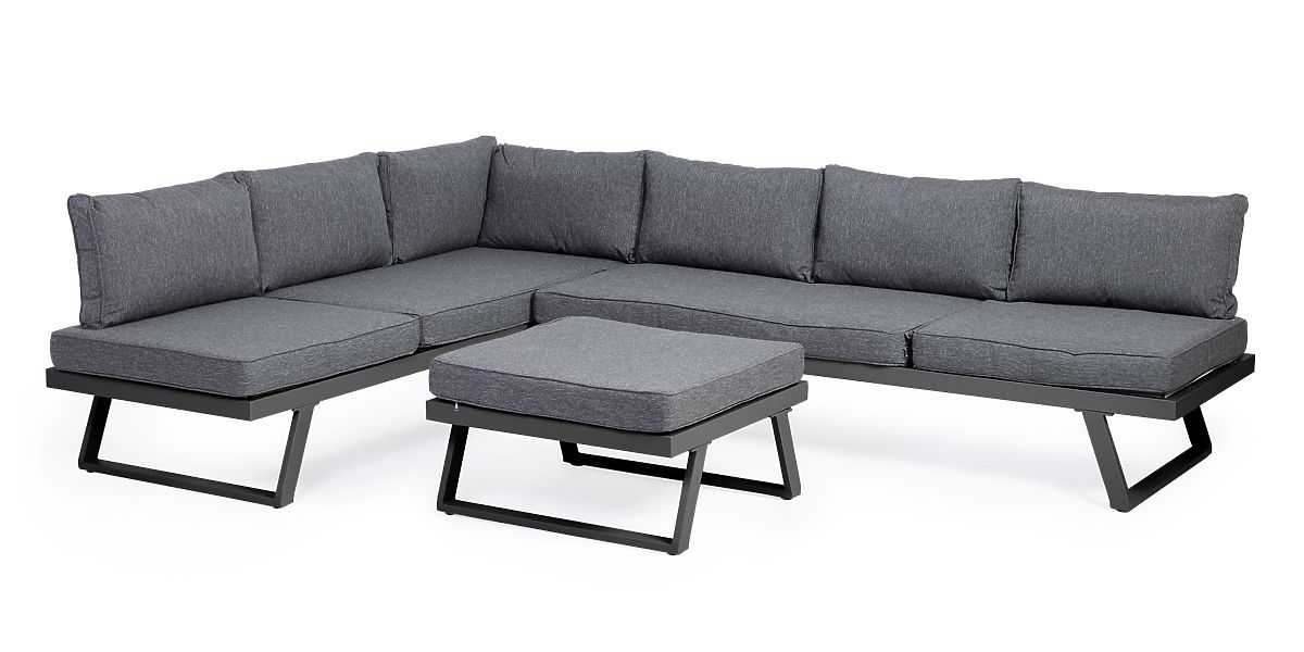 Lukahome.it » Mobili da giardino / Divani da giardino / Divano angolare da giardino con tavolino Lafoole Lunge, spun-poly, grigio scuro