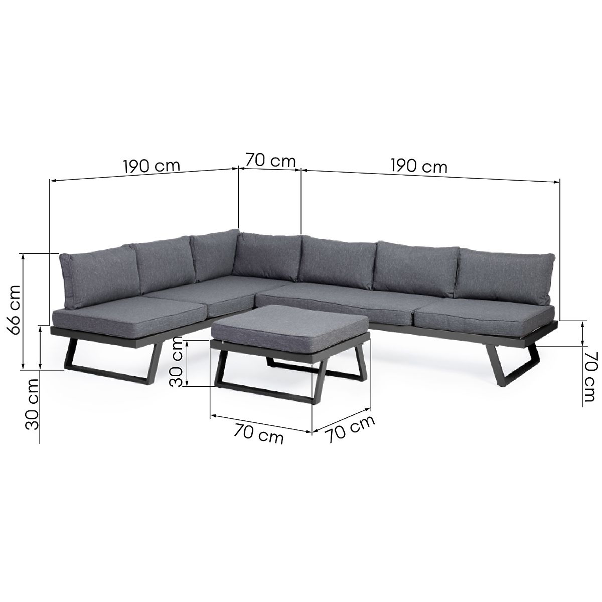 Divano angolare da giardino con cuscini in spun-poly e tavolino quadrato. .. altro