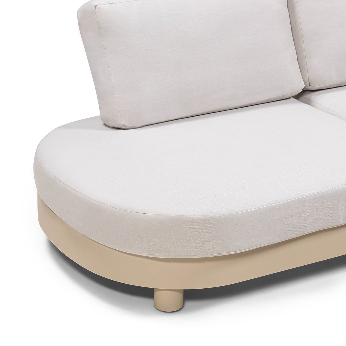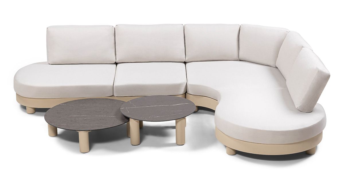 Divano angolare da giardino con tavolini rotondi e decorazione marmo. .. altro