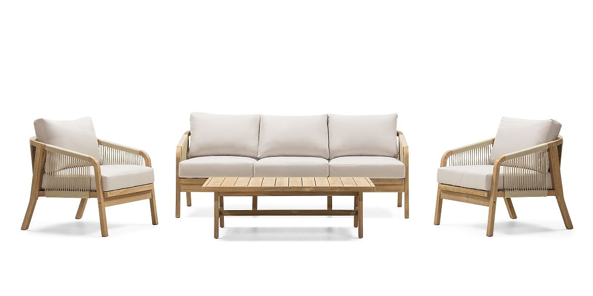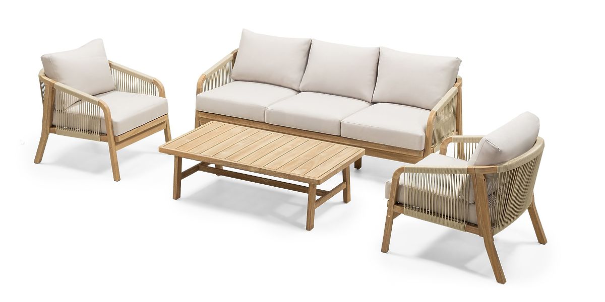 Lukahome.it » Mobili da giardino / Set da giardino / Set di mobili da giardino Castello, intrecciato, legno di acacia FSC, aspetto teak, beige