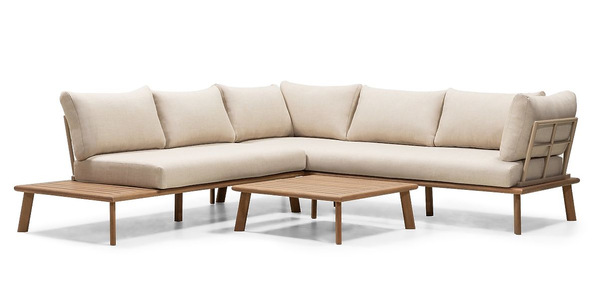 Lukahome.it » Mobili da giardino / Set da giardino / Divano angolare da giardino con tavolino Penne, legno di eucalipto FSC, beige