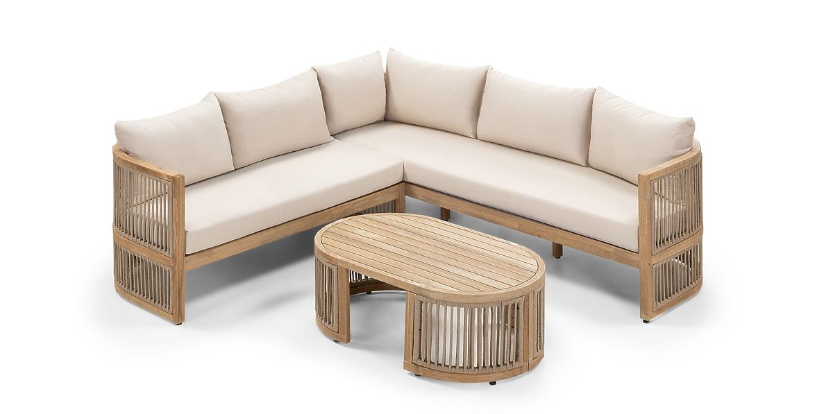 Lukahome.it » Mobili da giardino / Set da giardino / Set angolare da giardino con tavolino Vetralla, intreccio, legno di acacia FSC, aspetto teak, beige