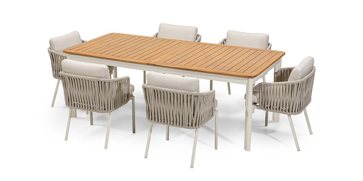 Lukahome.it » Mobili da giardino / Set da giardino / Set da giardino Porticato, tavolo allungabile 211-300 cm + 6 sedie, legno di acacia FSC, aspetto tea
