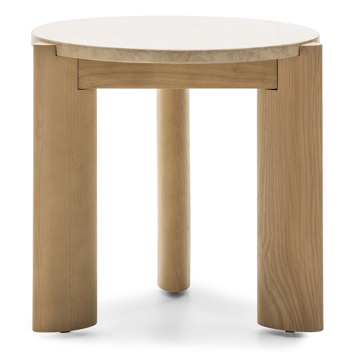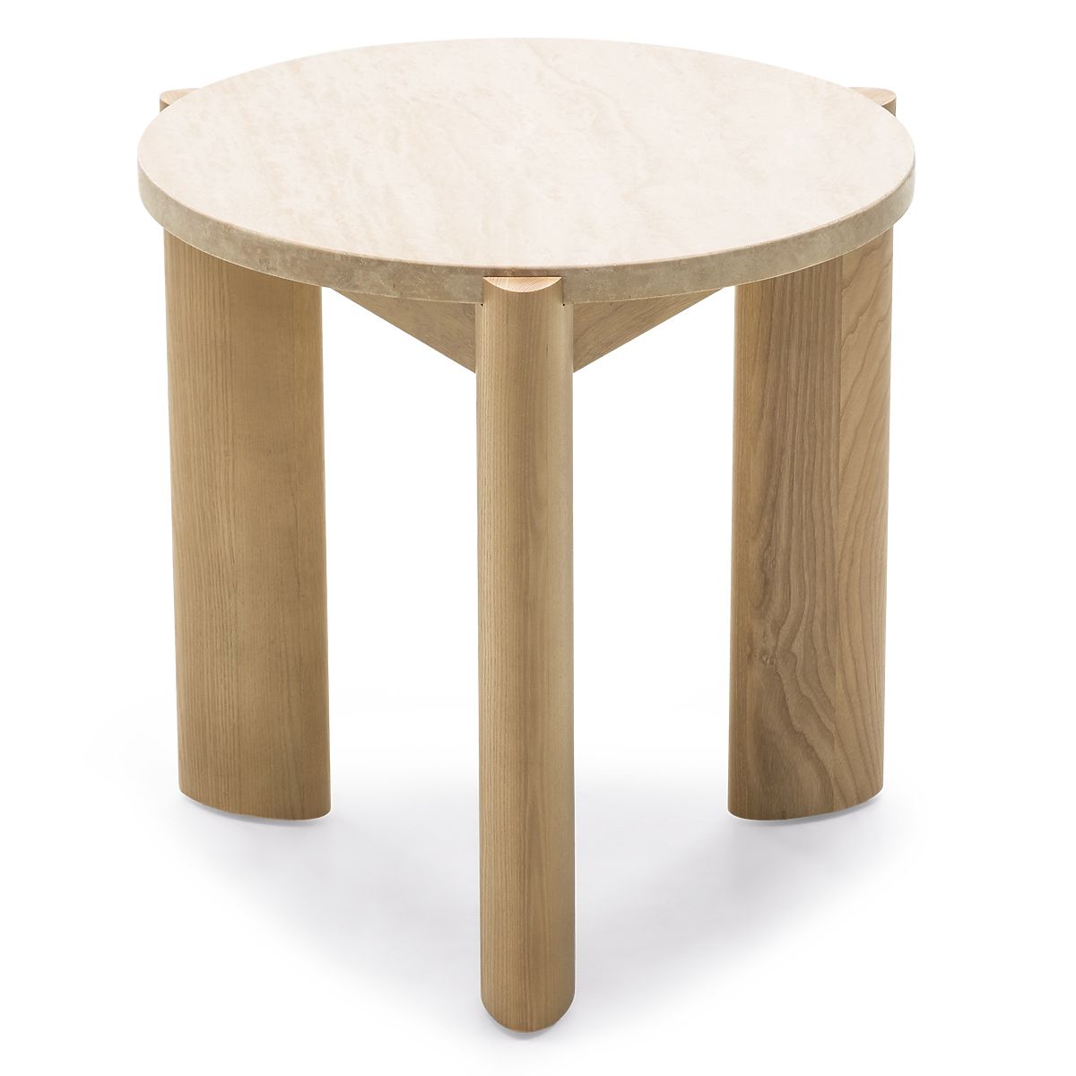 Tavolino rotondo Medley in travertino con gambe in frassino. .. altro