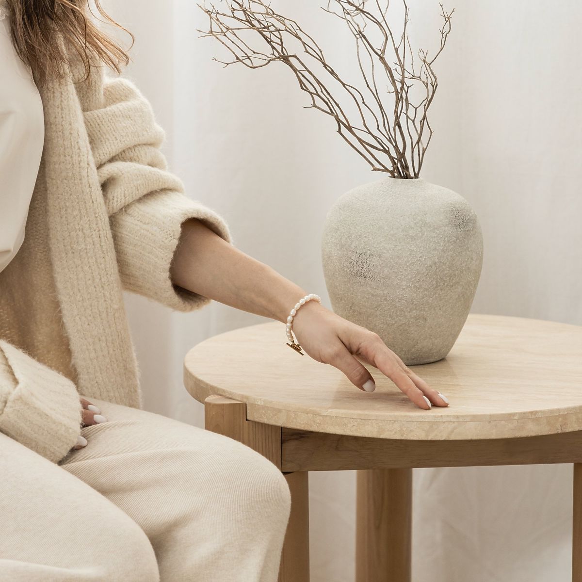 Lukahome.it » Tavoli e tavolini da caffè / Tavolini da caffè / Tavolino laterale Medley 50 cm, rotondo, travertino/frassino