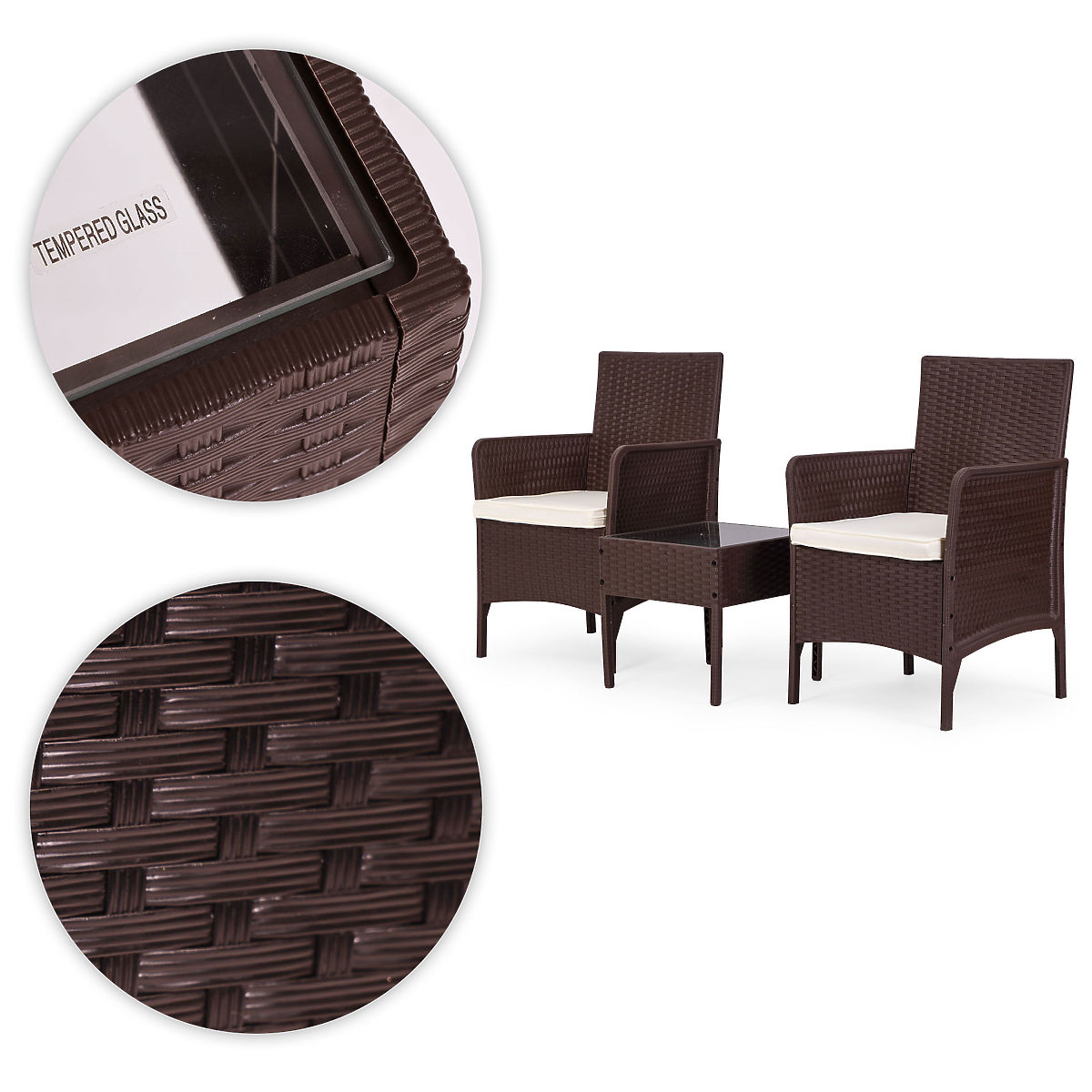 Lukahome.it » Mobili da giardino / Set da giardino / Set di mobili da giardino 2 poltrone + tavolino vetro temperato marrone MultiGarden