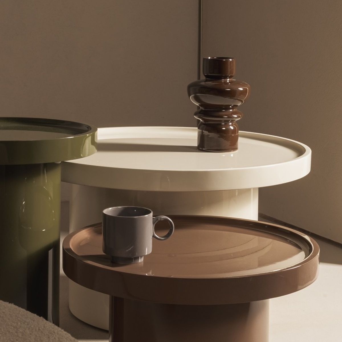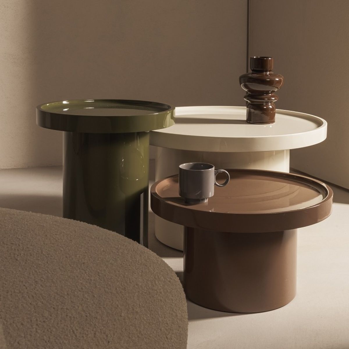 Tavolino Chia con superficie lucida e colore bianco, Ø70 cm. .. altro