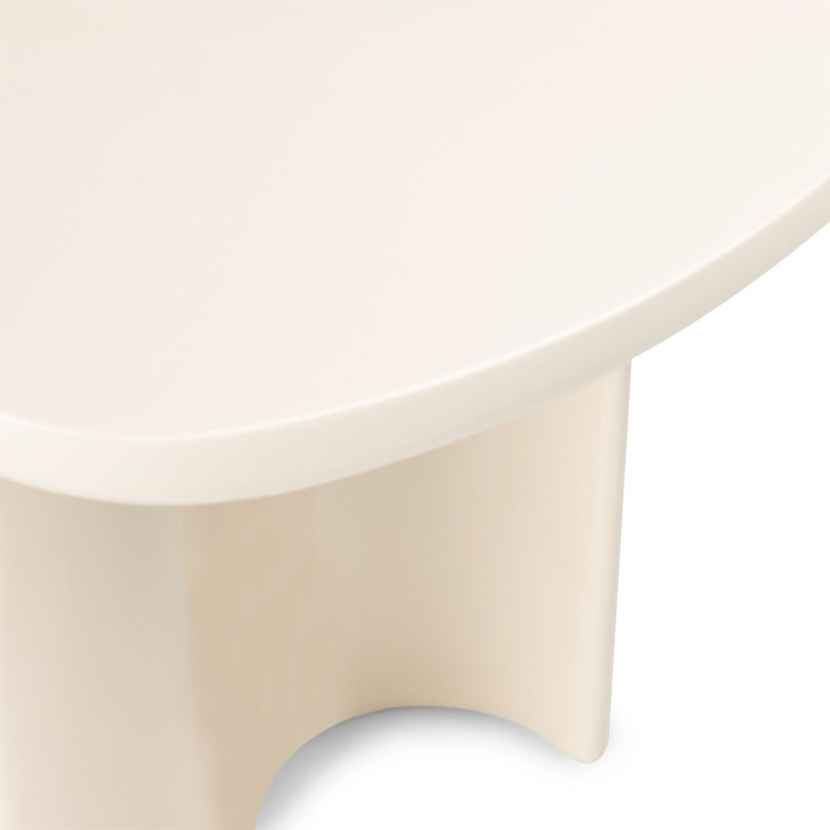 Tavolino laterale in MDF beige chiaro con piano ovale e superficie lucida. .. altro