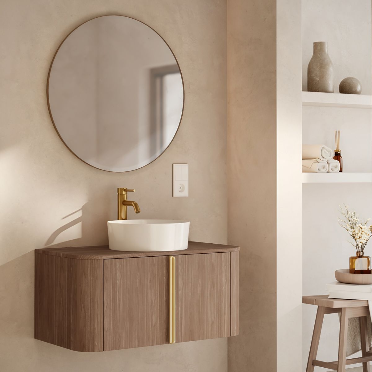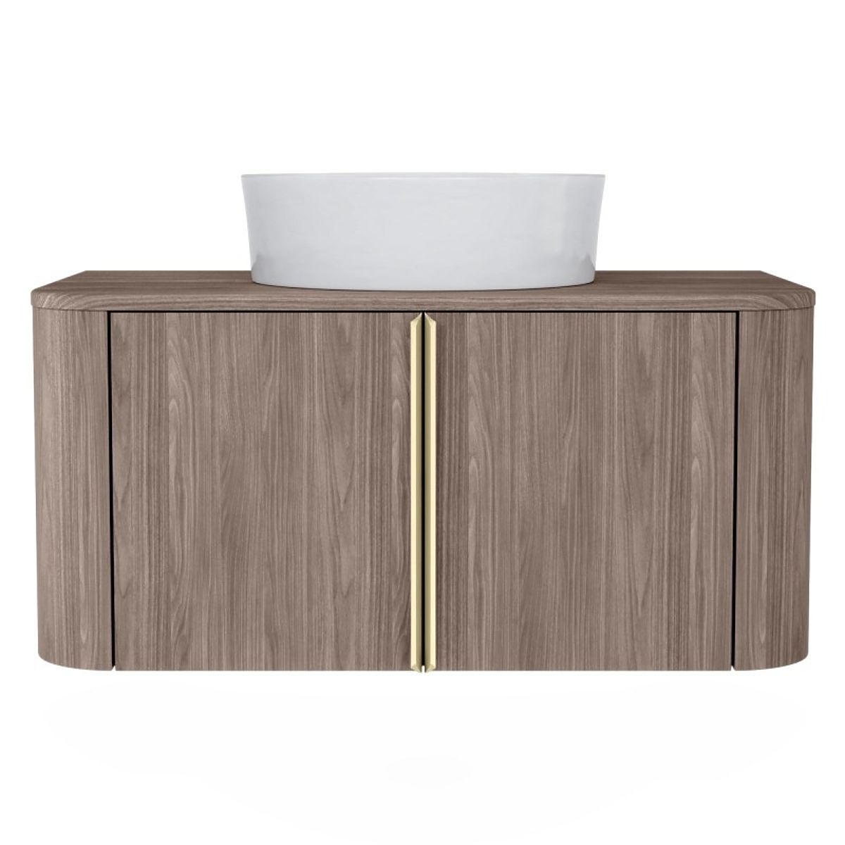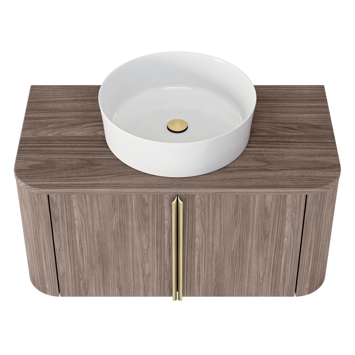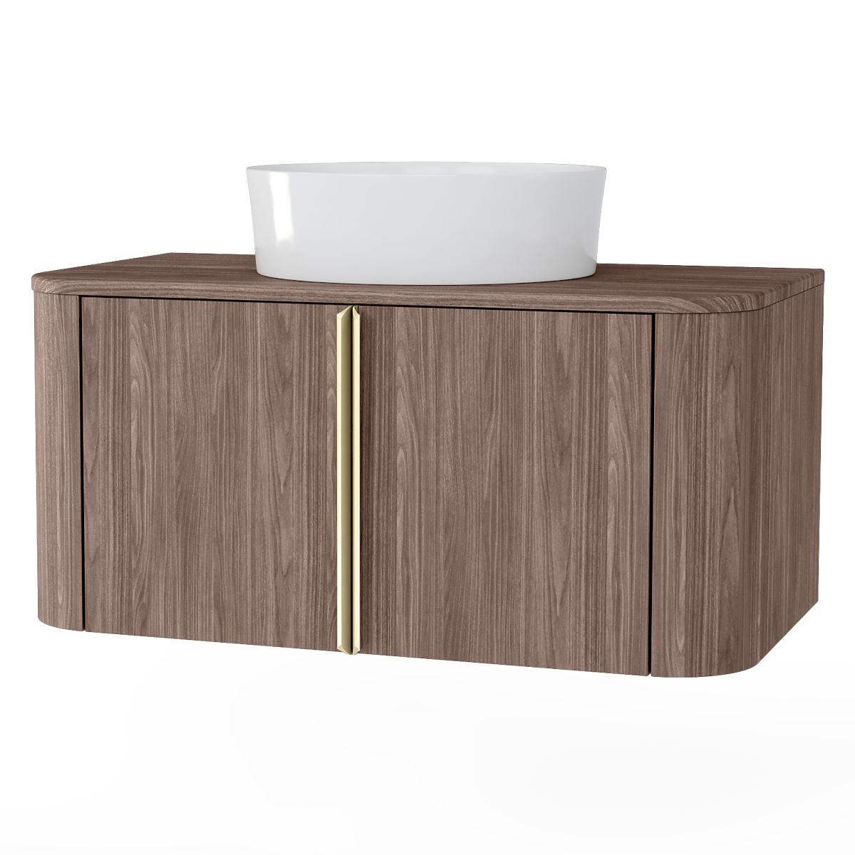 Lukahome.it » Bagno e toilette / Mobili da bagno / Mobiletto sotto lavabo da appoggio Bassa 80 cm, noce lincoln, maniglie dorate, arrotondato
