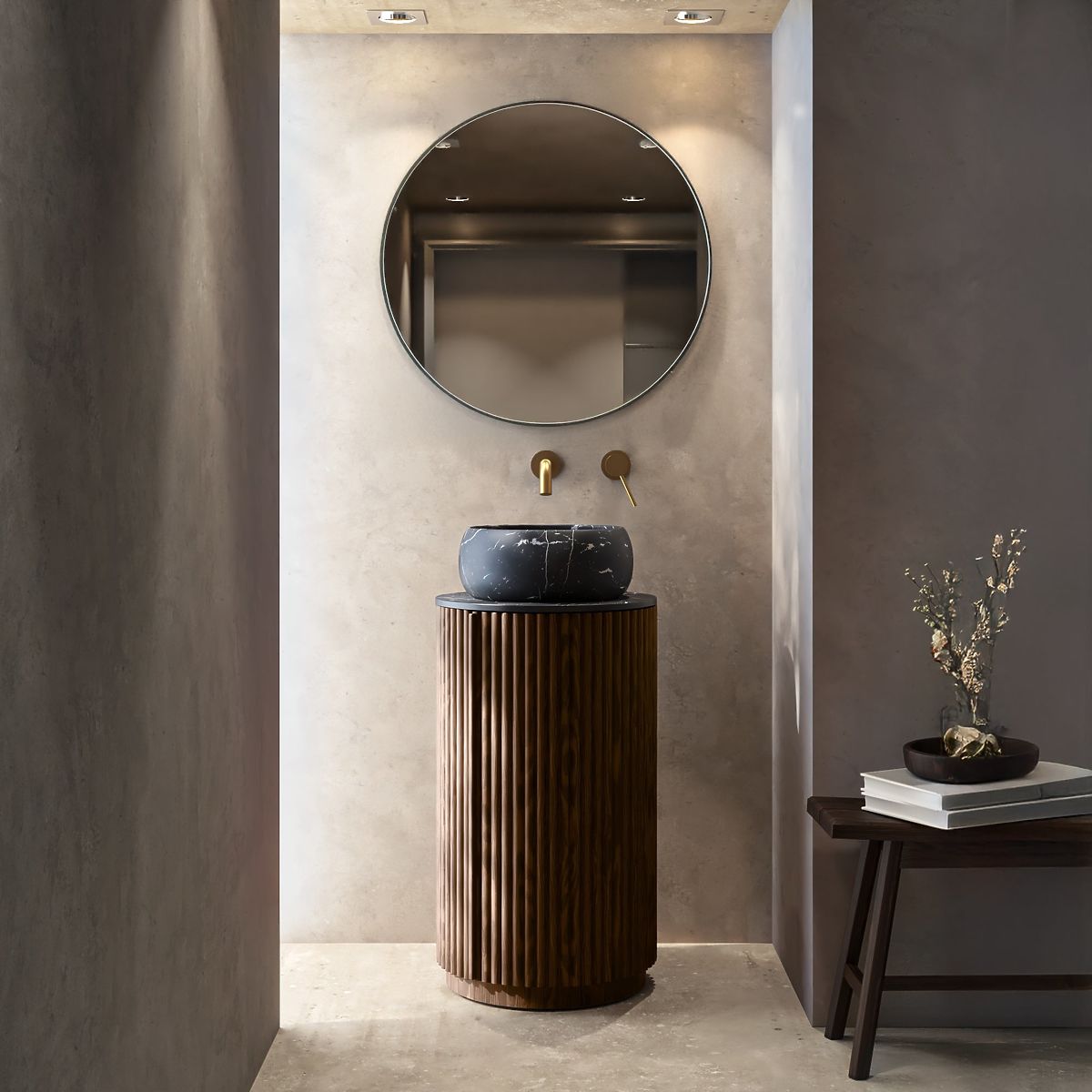 Lukahome.it » Bagno e toilette / Set da bagno / Set di mobiletto con piano e lavabo La promessa 40 cm, scanalato, arrotondato, noce scuro/nero