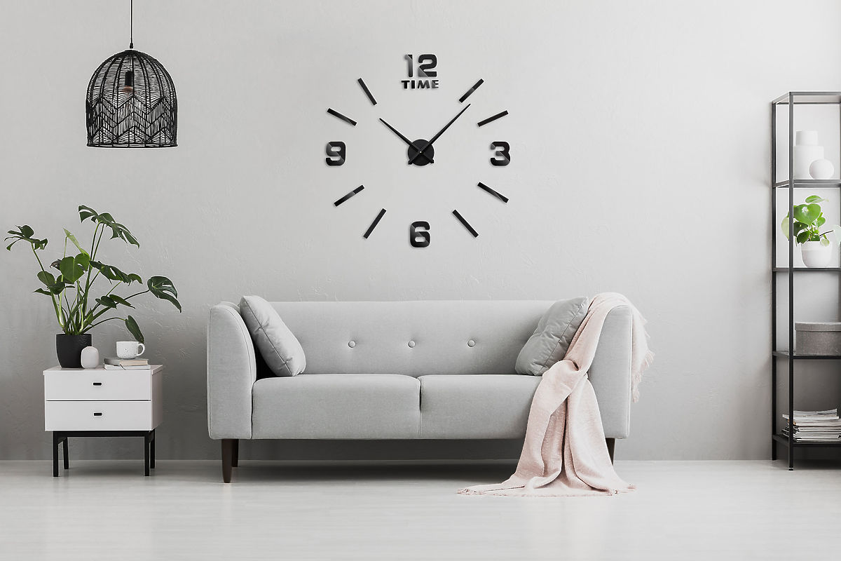 Orologio moderno tipo DIY - fai da te. Accessorio perfetto per ogni soggiorno o ufficio. La dimensione dell'orologio dipende da te! Puoi dargli qualsiasi diametro! Consigliamo una dimensione di 80-100 cm, in questo modo l'orologio appare al meglio. Orologio da incollare alla parete o su altre superfici lisce.