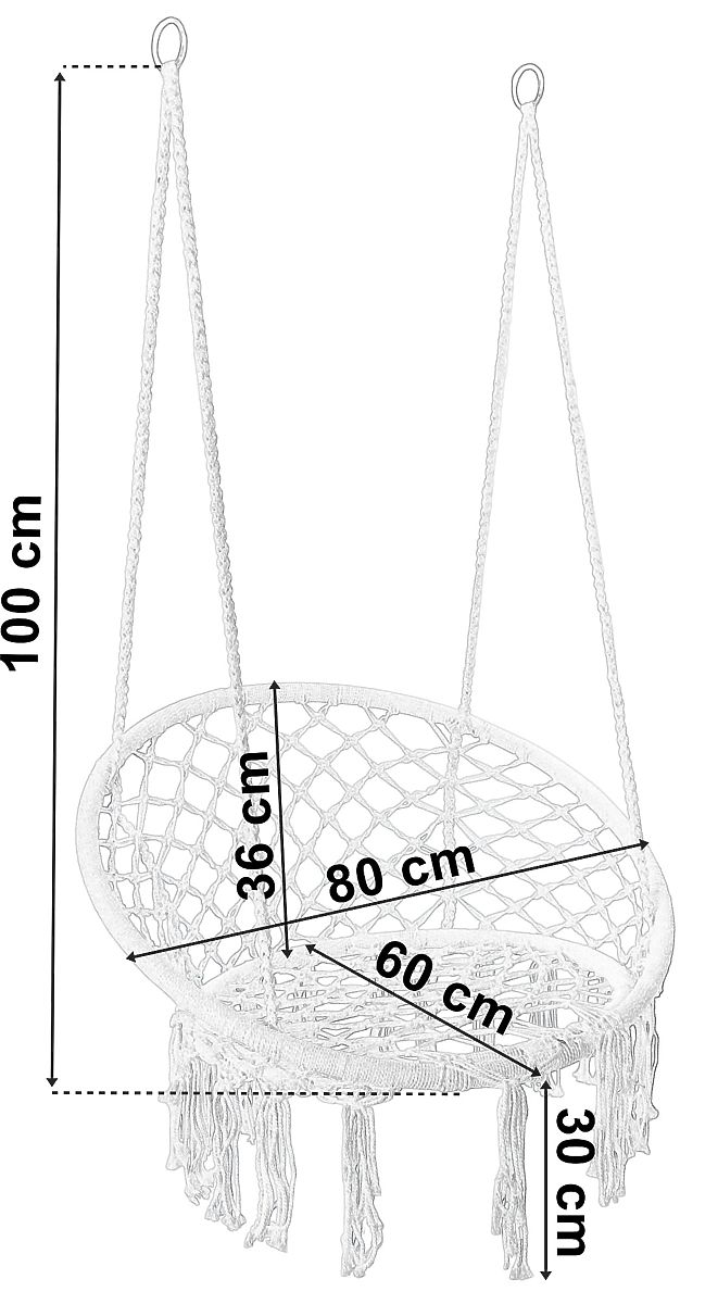 La sedia sospesa Togo è anche molto facile da montare, poiché le corde per il fissaggio terminano con anelli metallici. Può essere appesa in uno o due punti.