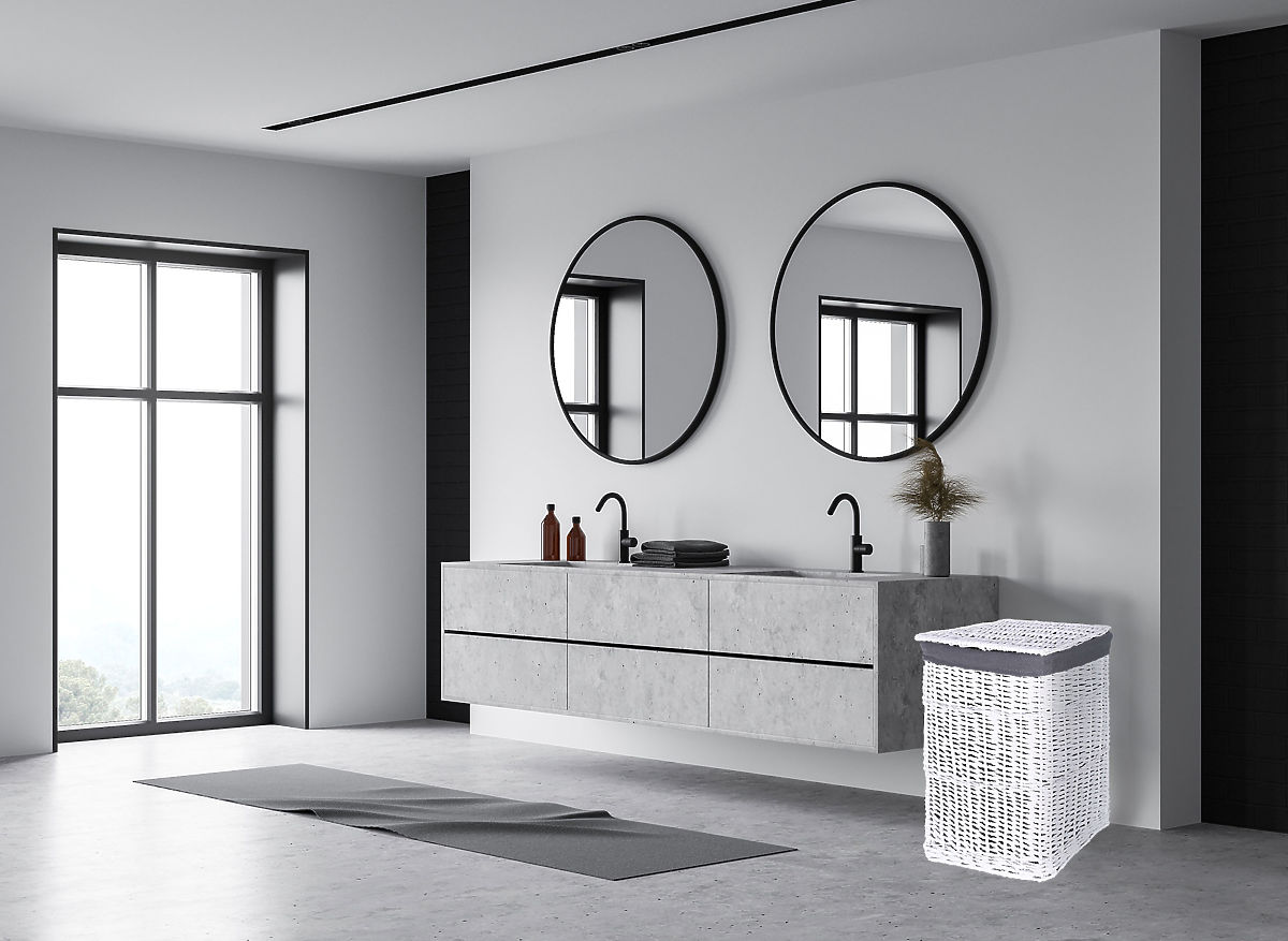Cesto di vimini 40x30x60 cm - 72L - bianco-grigio