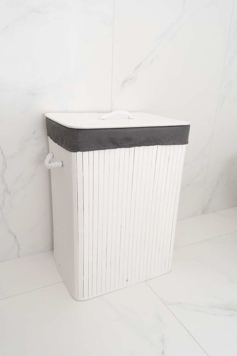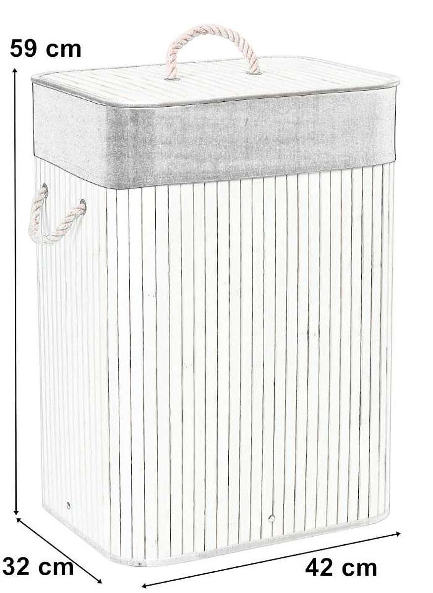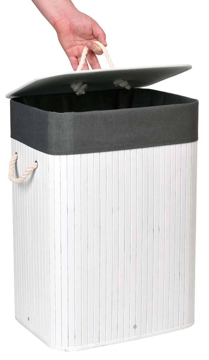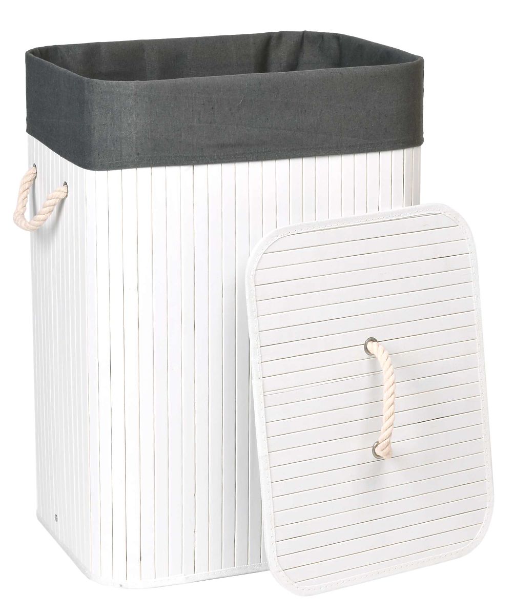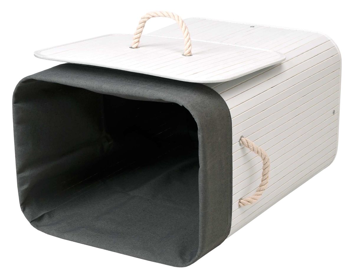 Cesto per biancheria in bambù con coperchio 80L bianco-grigio