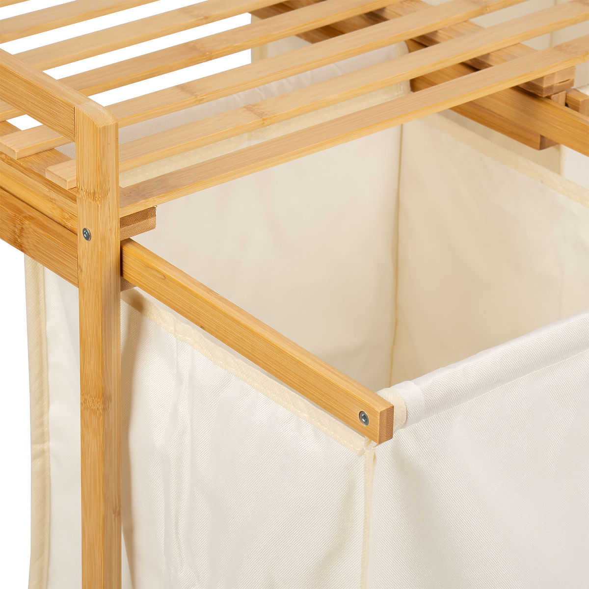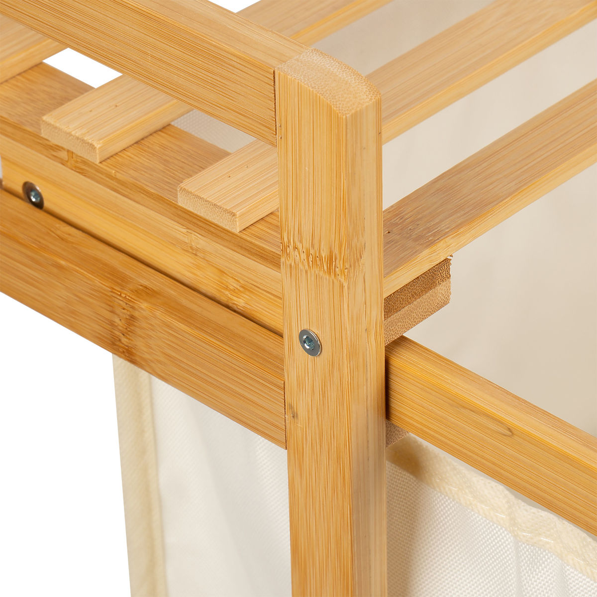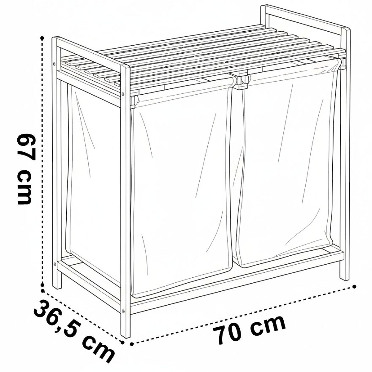 Il cesto per biancheria Hanoi è un cesto estetico e spazioso, in grado di contenere molti vestiti. Realizzato in bambù levigato, non ha bordi taglienti, è piacevolmente liscio e accuratamente rifinito. La mensola superiore può essere utilizzata come spazio per accessori da bagno, detersivi, ma anche per decorazioni o candele profumate. Il cesto è dotato di guide che facilitano il riempimento e lo svuotamento del sacco in tessuto. Grazie a queste, l'intero sacco può essere estratto e trasportato. Hanoi si monta senza forature e strumenti specializzati. L'assemblaggio richiede letteralmente un attimo e tutto il necessario per il montaggio è incluso nella confezione.