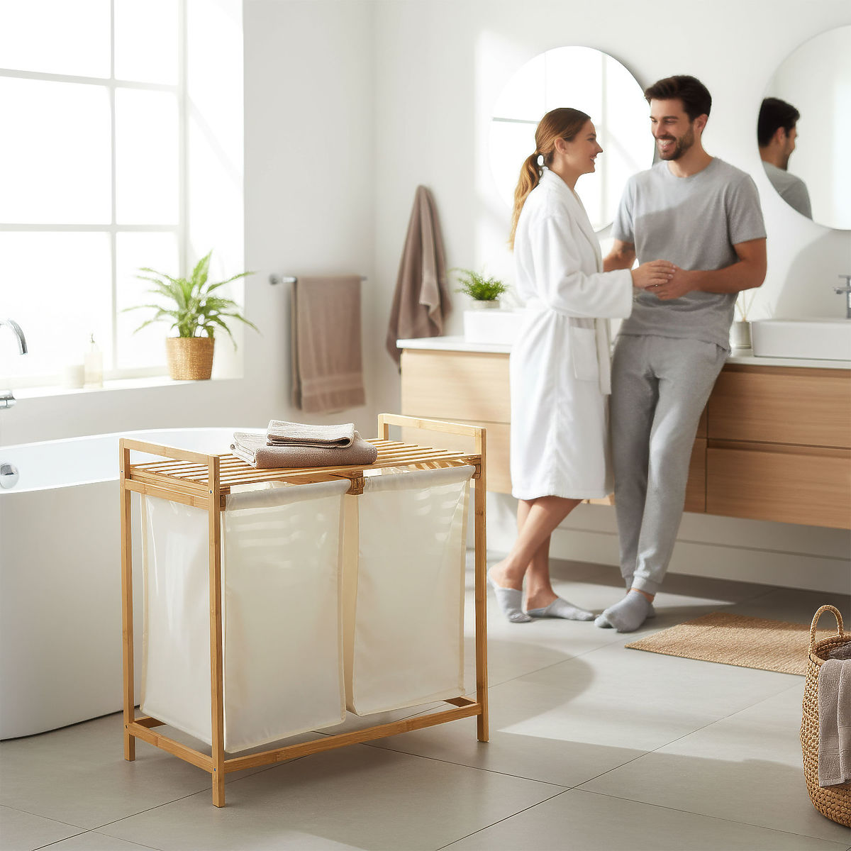 Cesto per biancheria o giocattoli in bambù HANOI 2 scomparti
