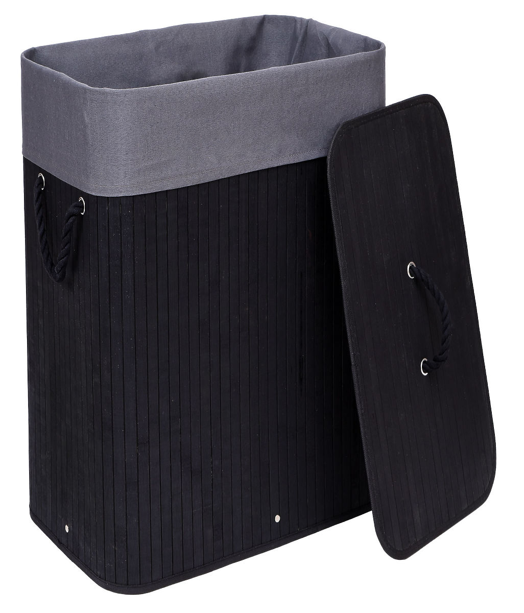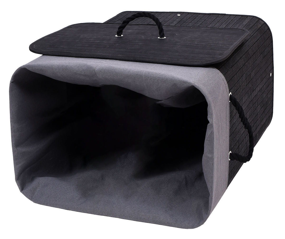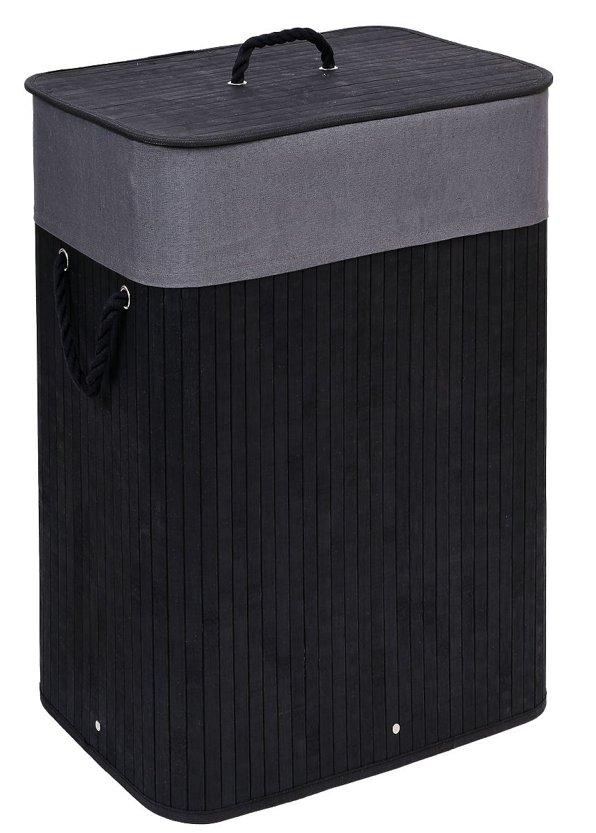 Cesto portabiancheria in bambù con coperchio 80L nero-grigio