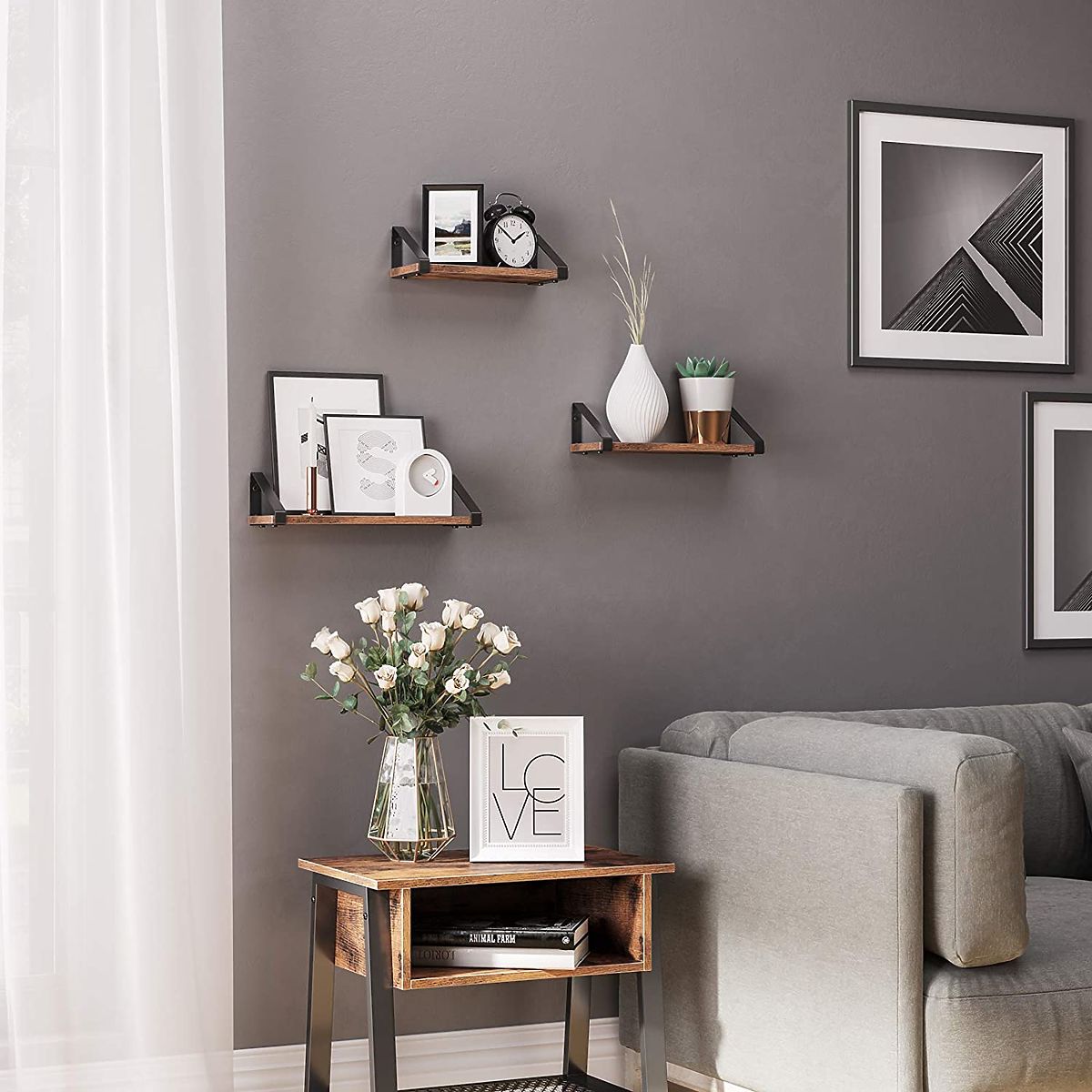 Il set di 3 mensole loft Sirin è destinato agli amanti dello stile loft. Le mensole sono realizzate con profili in acciaio verniciati a polvere e pannelli laminati nel colore della quercia antica. La struttura dei profili consente il montaggio in due modi: sopra o sotto la mensola. In questo modo possiamo adattare l'arredamento alle nostre preferenze. Le mensole Sirin sono realizzate con materiali di altissima qualità con attenzione ai minimi dettagli. Sono perfette per esporre libri preferiti, piante o bellissimi accessori per interni. Sono state progettate per stili: loft, classico, industriale.