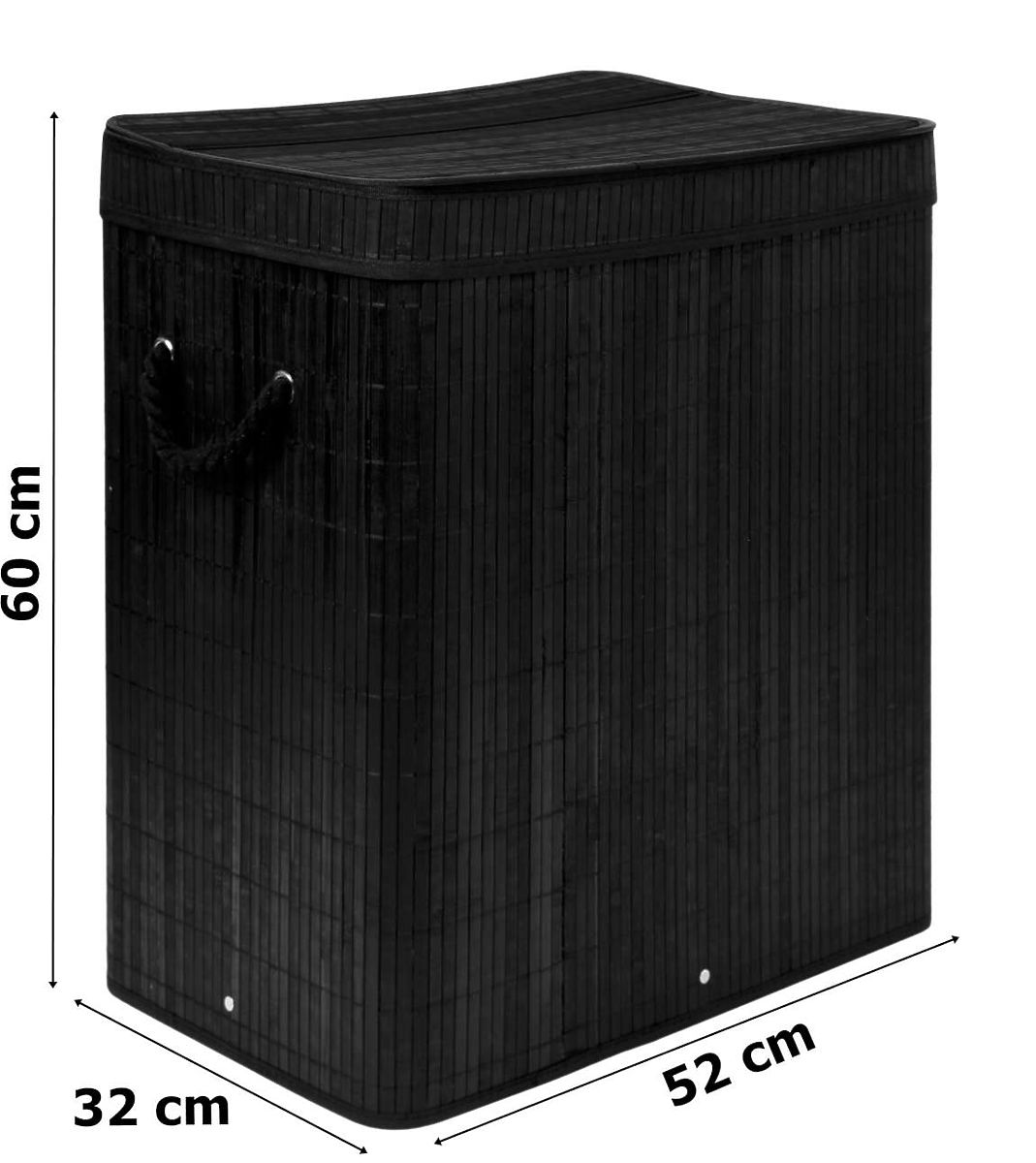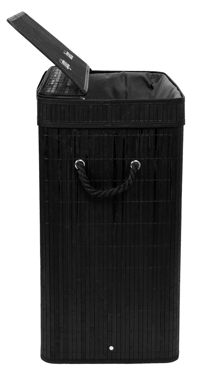Cesto per biancheria in bambù con coperchio 100L nero