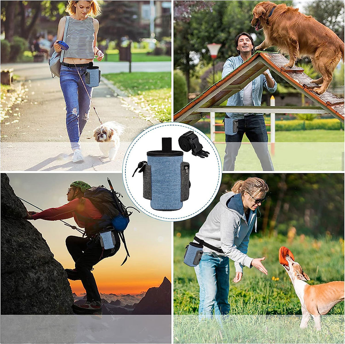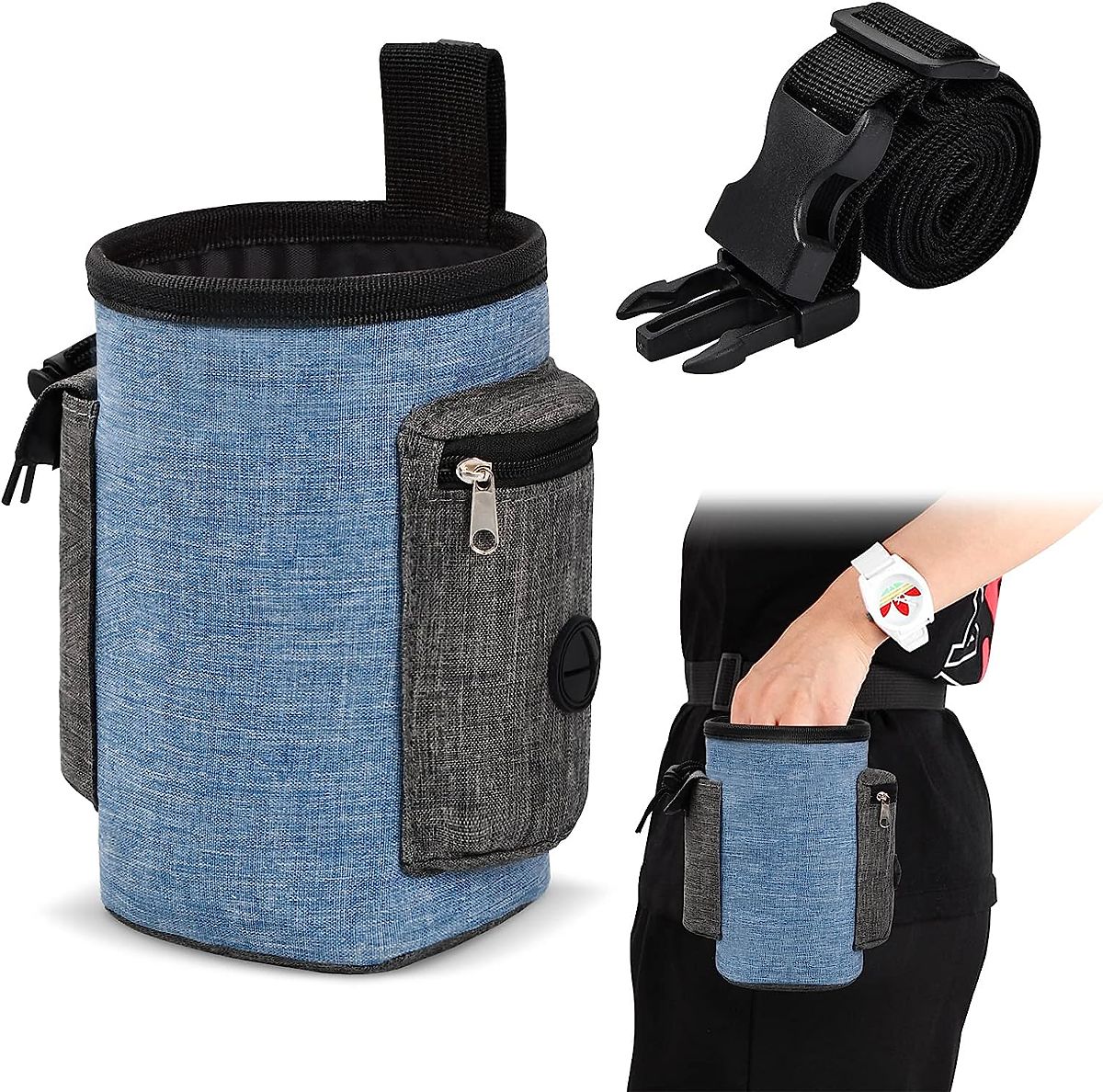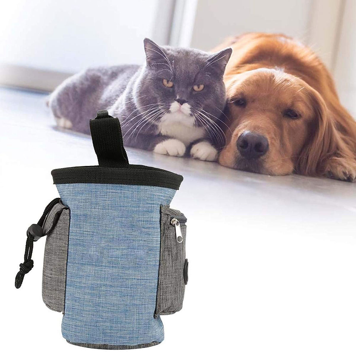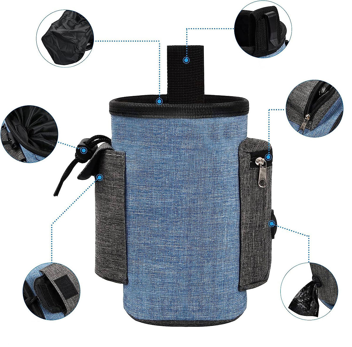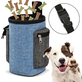 Borsa eccezionale per snack per cani - di alta qualità, impermeabile e resistente. Ideale per viaggiare con il tuo animale domestico, garantendo passeggiate e viaggi sicuri. Grande capacità, scomparti aggiuntivi e tasche per piccoli oggetti. Forte clip per cintura, cintura regolabile. Accesso facile al contenuto, senza rischio di fuoriuscita di cibo. Lino impermeabile - la borsa è leggera, resistente e facile da pulire.