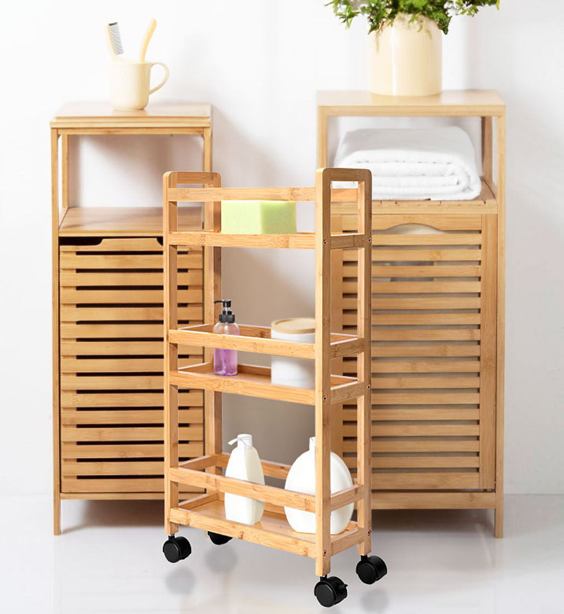 Scaffale in bambù su ruote INAKI 3 livelli naturale