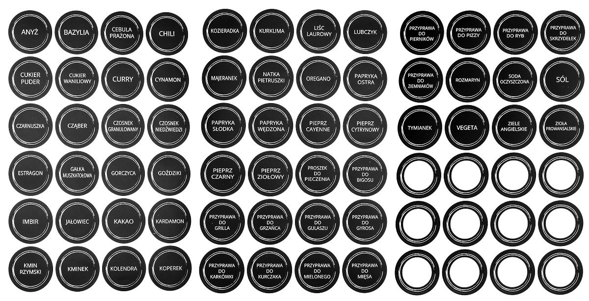 Numero di barattoli: 24 | 72 adesivi con nomi delle spezie