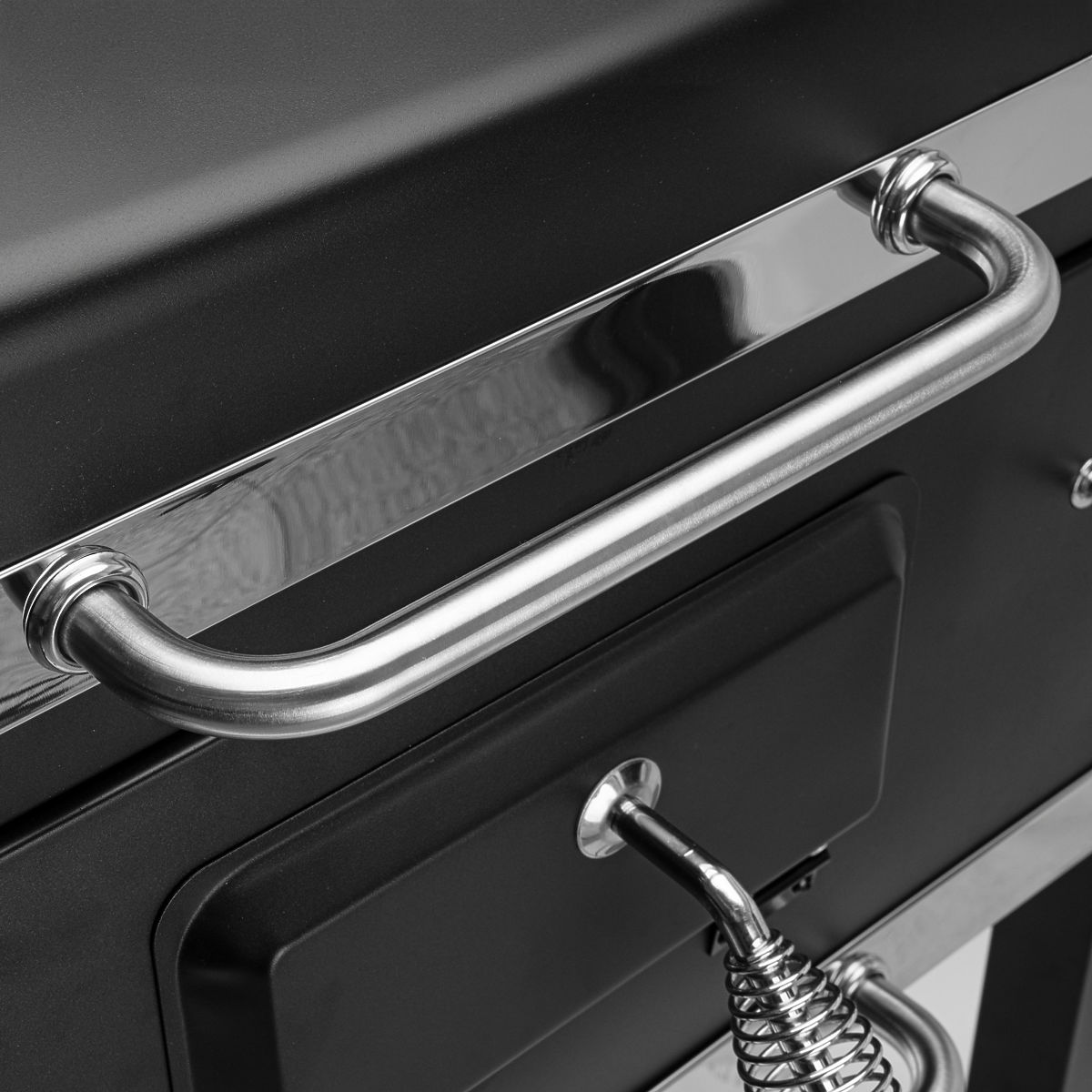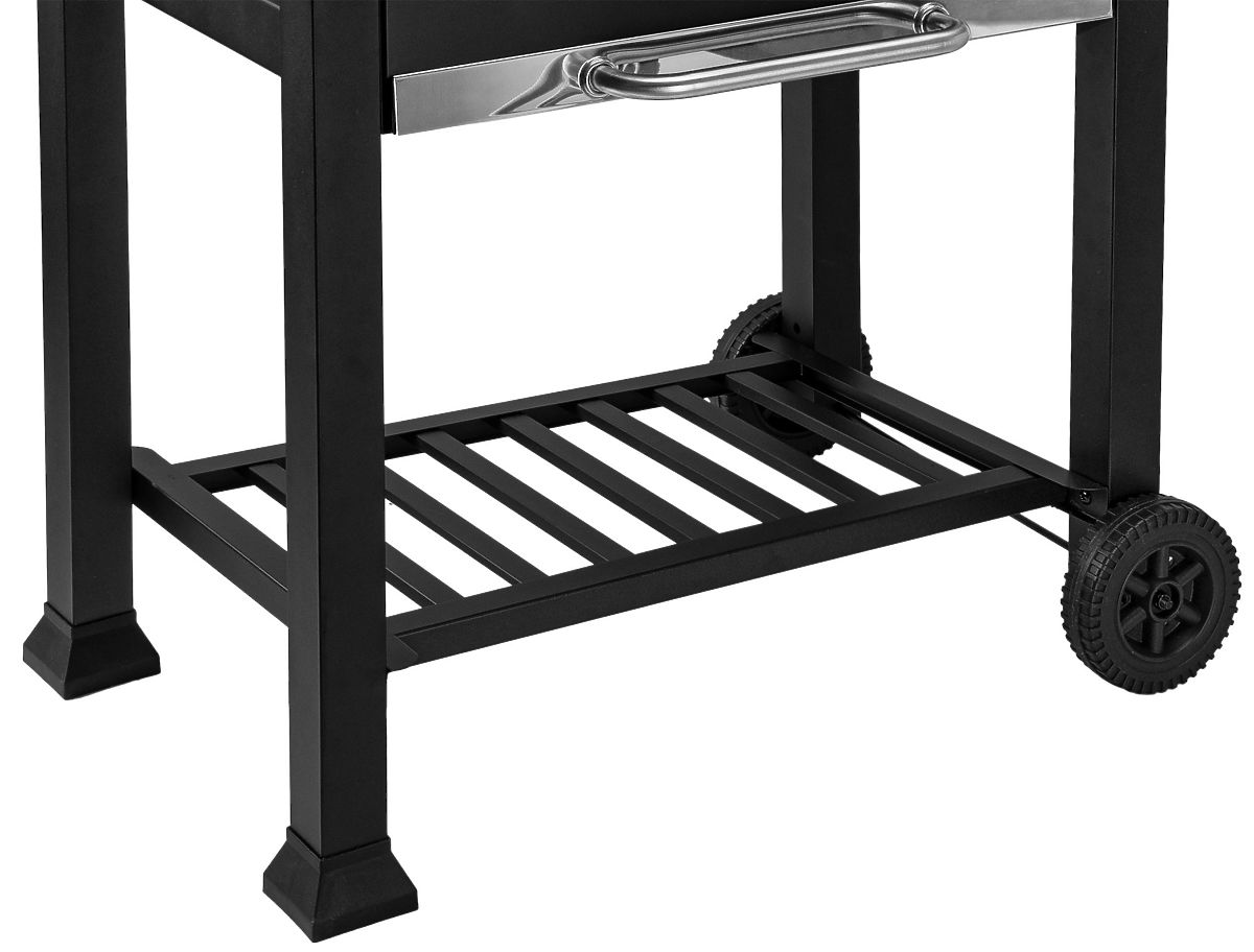 Il barbecue a carbone con coperchio su ruote Mejor è la scelta ideale per gli amanti del barbecue che apprezzano la qualità e la funzionalità. Realizzato in acciaio verniciato a polvere resistente, combina durata con un aspetto elegante, rendendolo un elemento perfetto per ogni giardino o terrazza. La grande griglia cromata e la mensola riscaldante offrono spazio sufficiente per preparare una varietà di piatti, ideale per incontri familiari e tra amici. Ulteriori miglioramenti, come il termometro preciso, i fori per la regolazione dell'aria, le maniglie comode, l'apribottiglie, lo sportello di ispezione e il cassetto raccogli cenere estraibile, rendono il barbecue comodo, efficiente e molto piacevole.