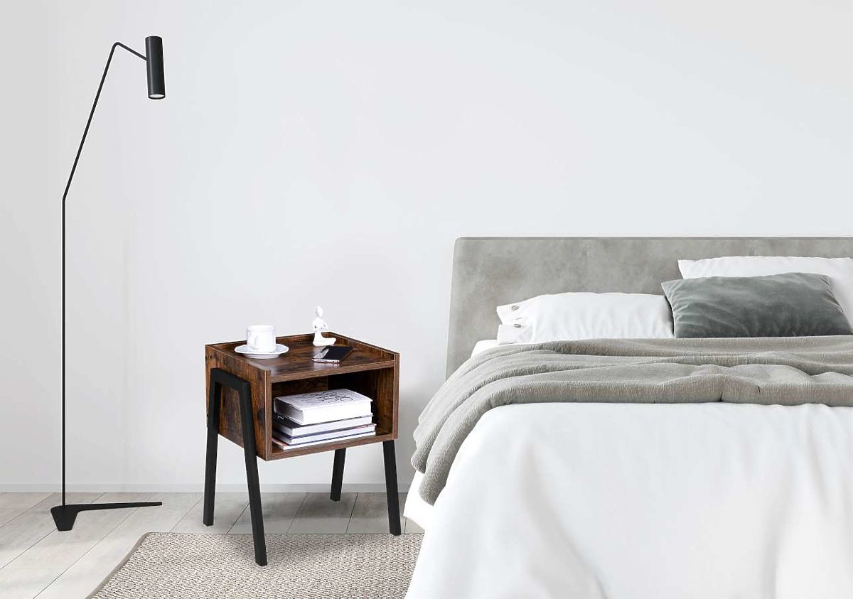 Skive è un comodino eccezionale e pratico. Realizzato con materiali di altissima qualità, con attenzione a ogni dettaglio. La solida struttura in acciaio verniciato a polvere e il pannello laminato che ricorda il rovere antico si completano perfettamente, creando un comodino dal design moderno. Il modello si adatta perfettamente a spazi arredati in modo originale. È ideale per stili loft, industriali e vintage. Skive è un modello versatile. Grazie alla sua struttura compatta e ben progettata, può servire anche come tavolino laterale accanto al divano. Gli scaffali e il grande vano possono facilmente contenere libri preferiti, riviste e oggetti che vogliamo avere a portata di mano, come occhiali o telefono.