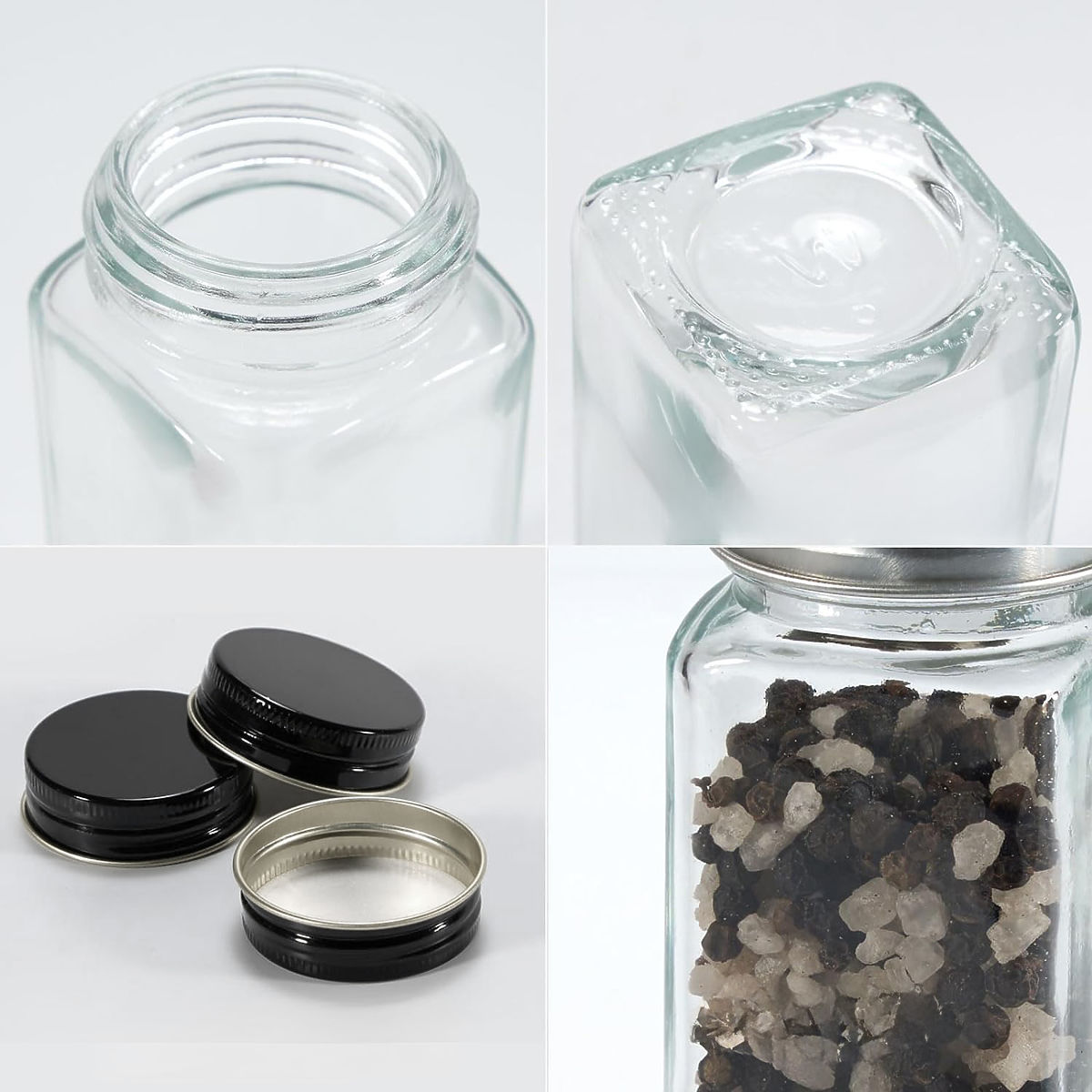 Colore del vetro: trasparente, colore dei coperchi: nero