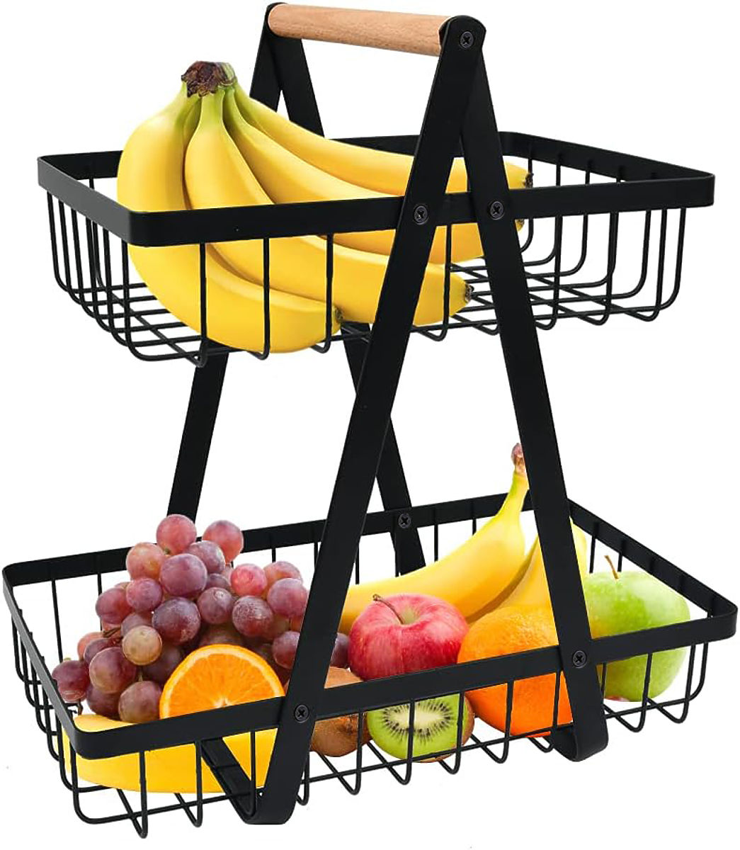 ✅ Praticità al primo posto - Il cestino a due livelli offre ampio spazio per conservare diversi tipi di frutta e la sua struttura stabile assicura che la frutta rimanga in perfette condizioni.