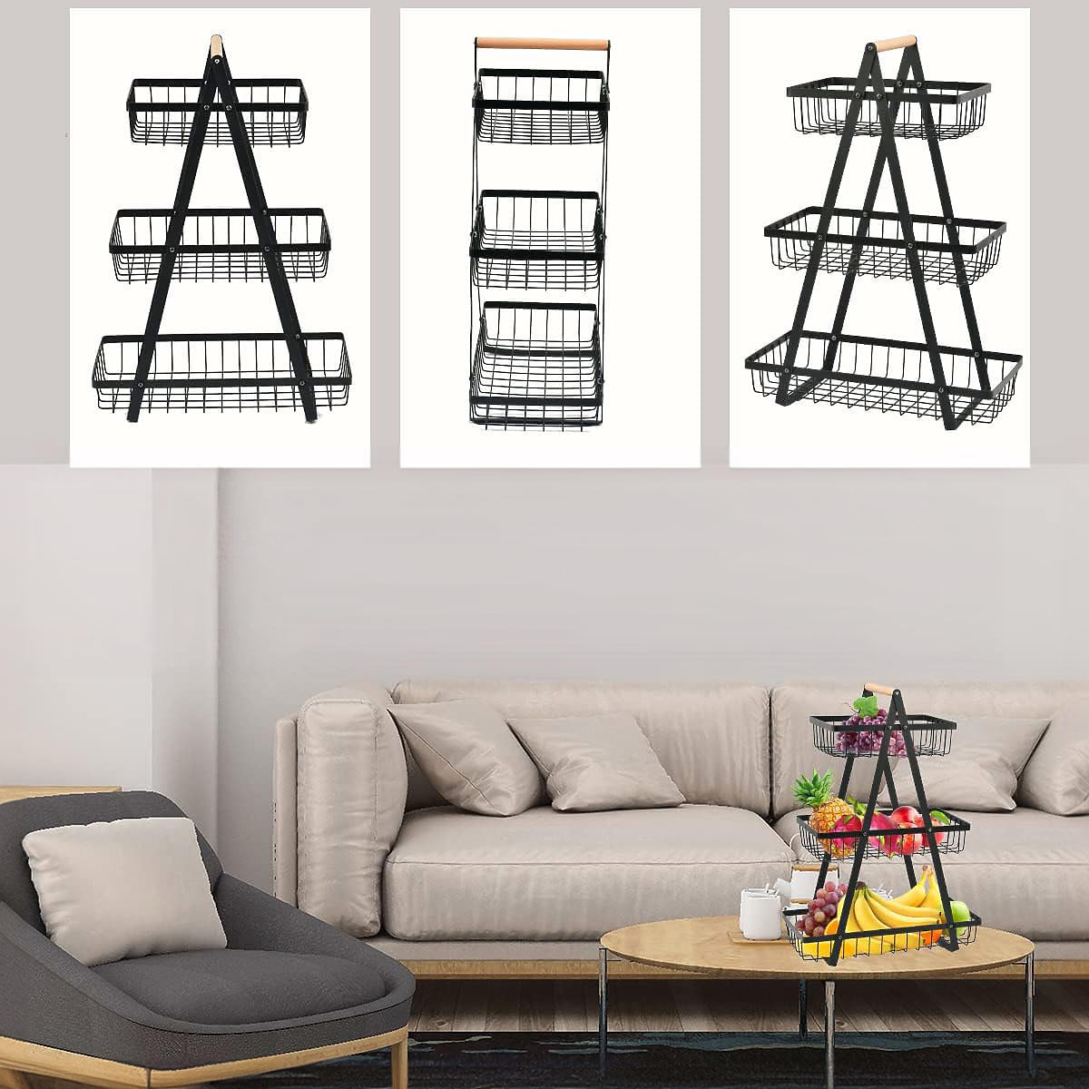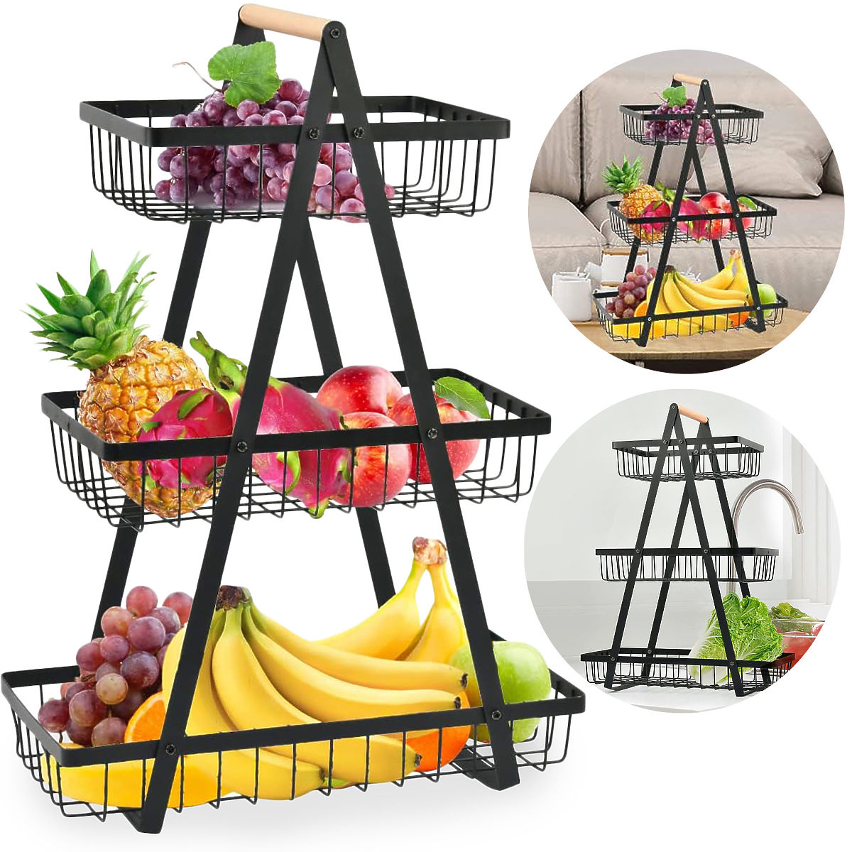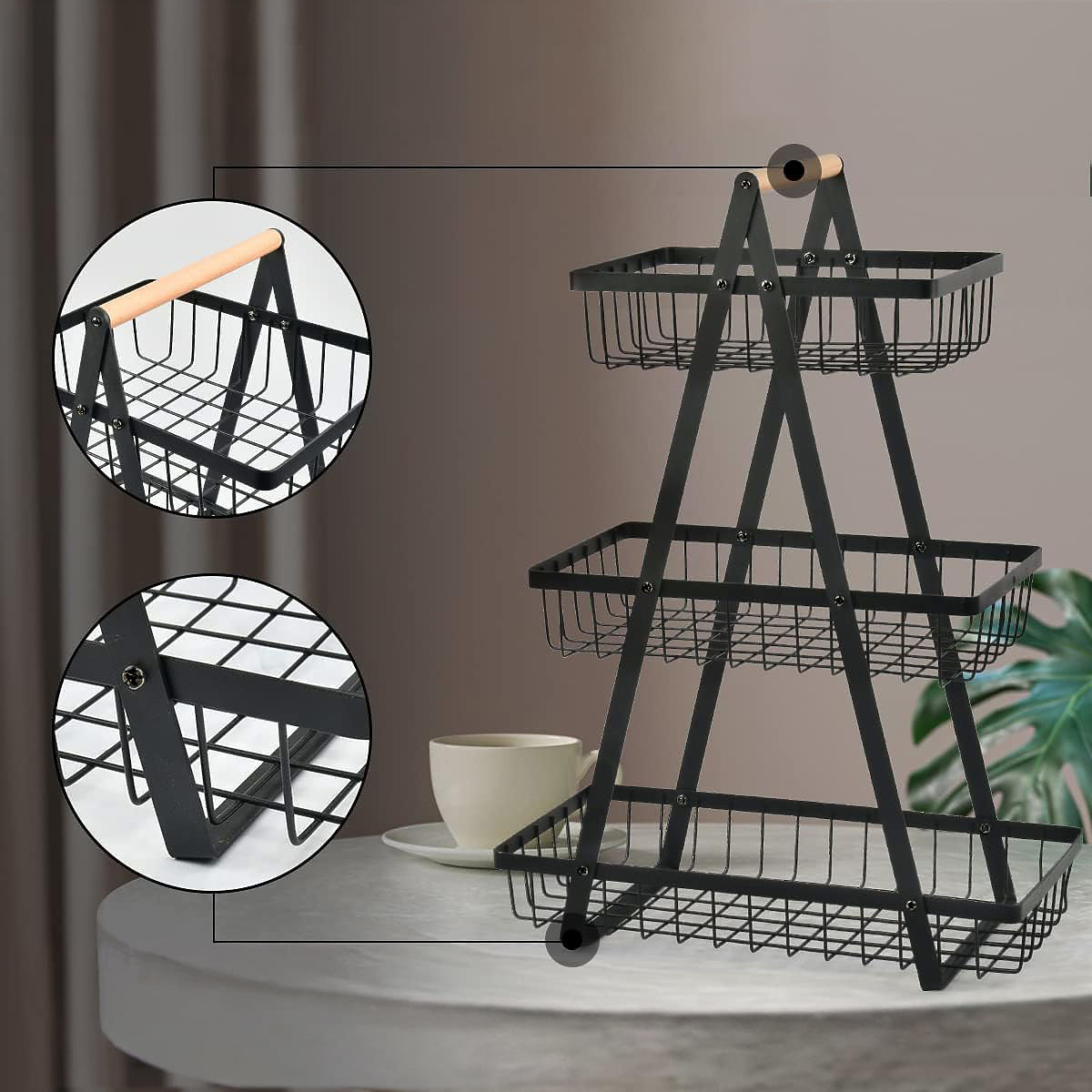 Cesto per frutta PULOS 3 livelli nero