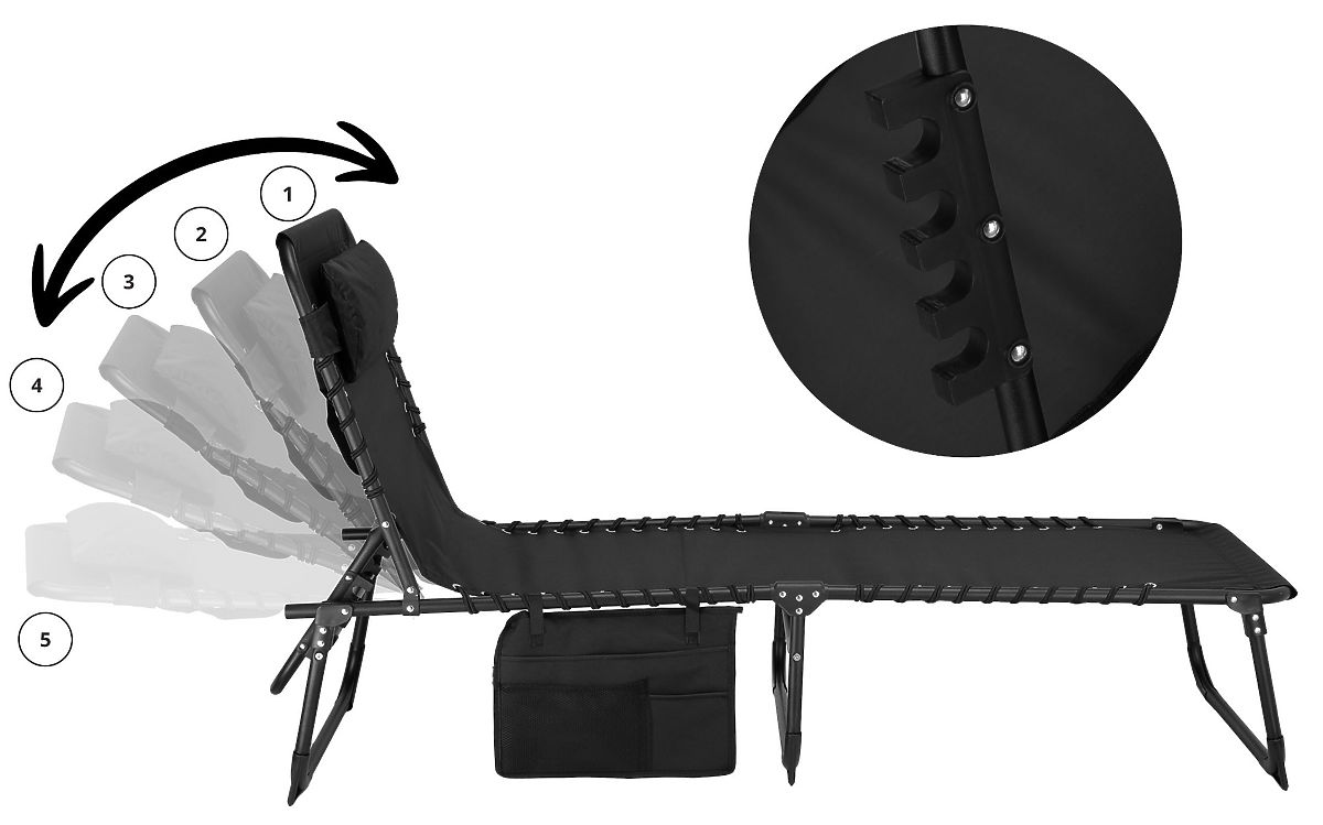 Lettino da giardino pieghevole regolabile FENIKS nero
