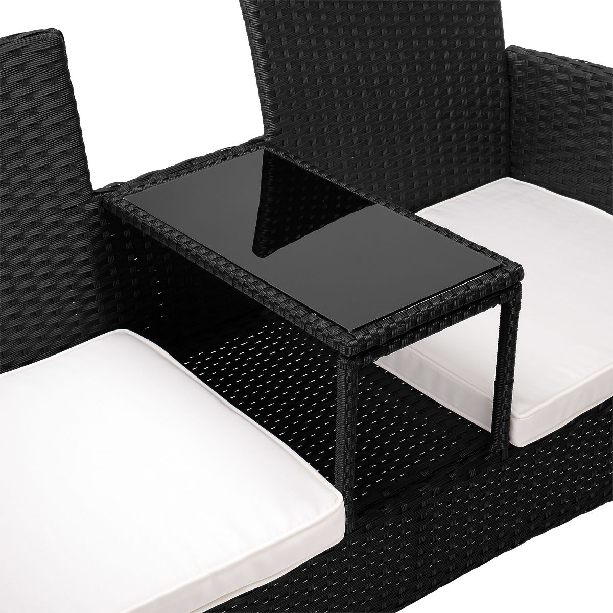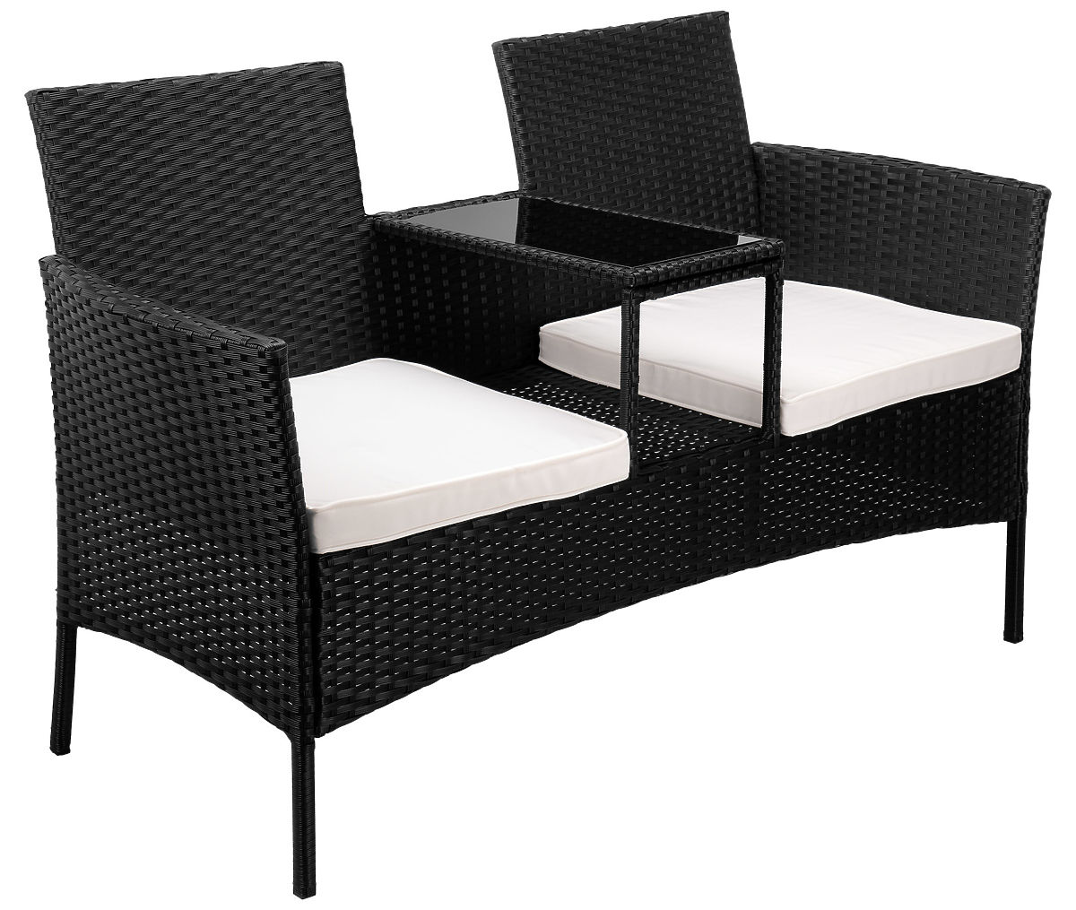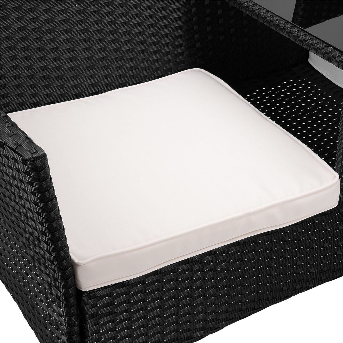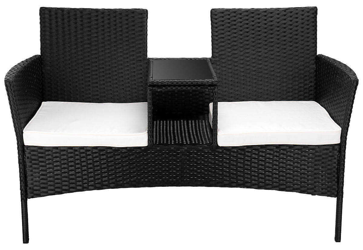 Panca da giardino in tecnorattan divano CORDOBA nero con cuscini beige