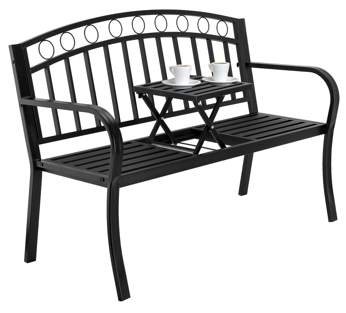 La panchina Banco è la perfetta combinazione di design moderno e funzionalità. Grazie al tavolino integrato e pieghevole, puoi goderti una tazza di caffè o un libro. La struttura in acciaio garantisce stabilità e durata, mentre il classico colore nero si adatta a qualsiasi spazio esterno o terrazza.