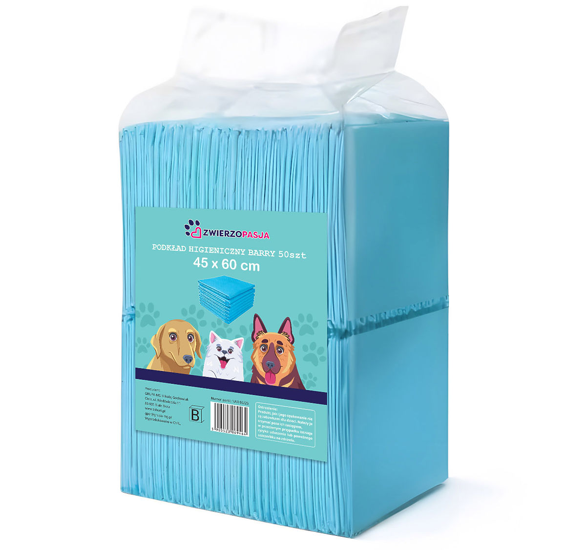 Tappetini igienici BARRY 45x60 50 pezzi. Utilizzo: Per piccoli animali | Dimensioni: 45 x 60 cm I tappetini igienici Barry sono un supporto pratico e affidabile per ogni proprietario di cani. Facilitano il mantenimento della pulizia in casa, promuovono le abitudini igieniche nei cuccioli e proteggono efficacemente pavimenti e cucce da contaminazioni. Grazie a loro, tu e il tuo animale domestico potete godere di maggiore comfort e tranquillità ogni giorno.