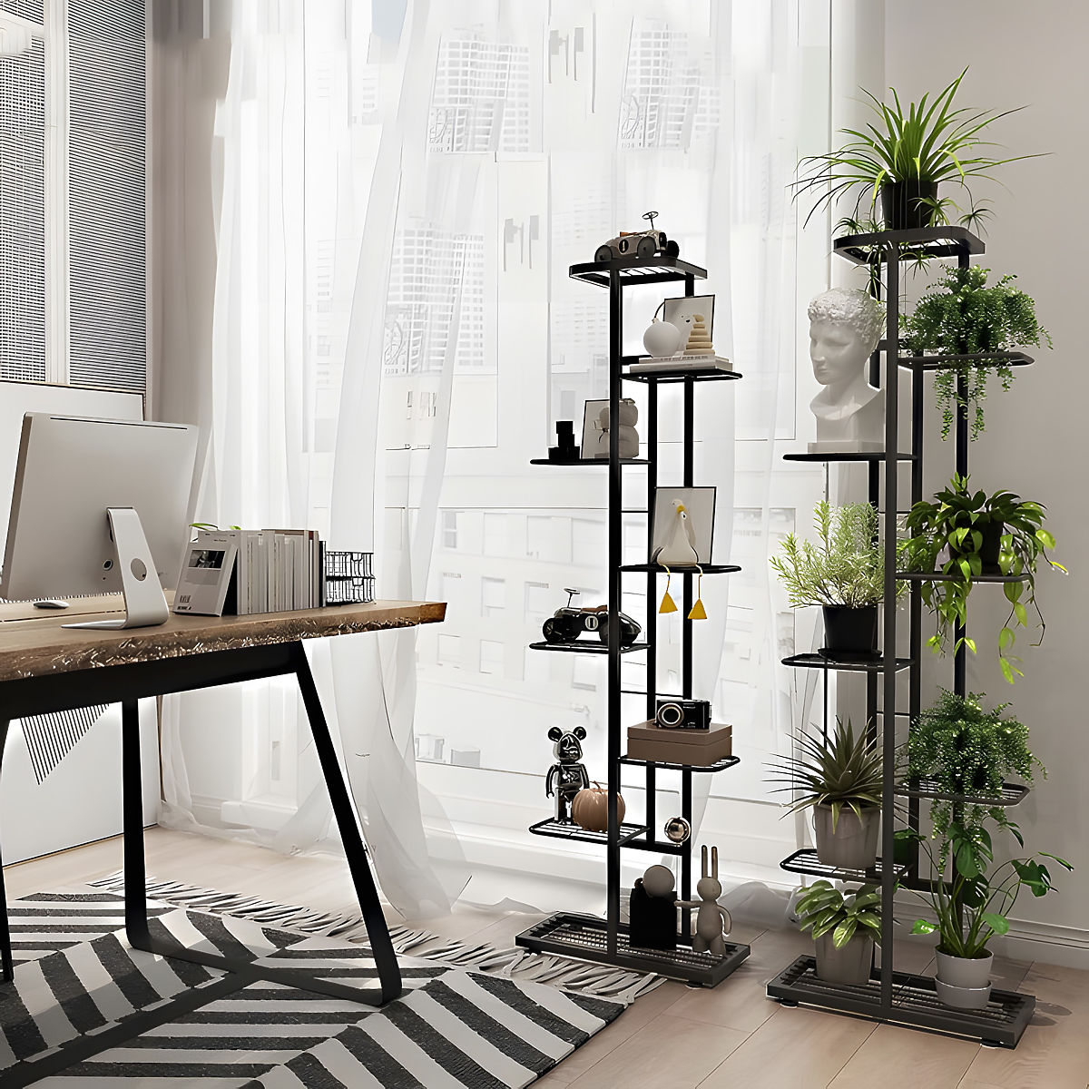 Il portafiori NEST è una decorazione funzionale che consente di esporre fino a 8 piante in un unico luogo senza occupare molto spazio. Grazie al colore nero senza tempo e al design moderno, si adatta perfettamente a qualsiasi ambiente, dal soggiorno al balcone. Otterrete non solo ordine, ma anche un'atmosfera accogliente con un tocco di elegante stile. La struttura in acciaio garantisce stabilità e le dimensioni compatte aiutano a risparmiare spazio, anche in ambienti piccoli.