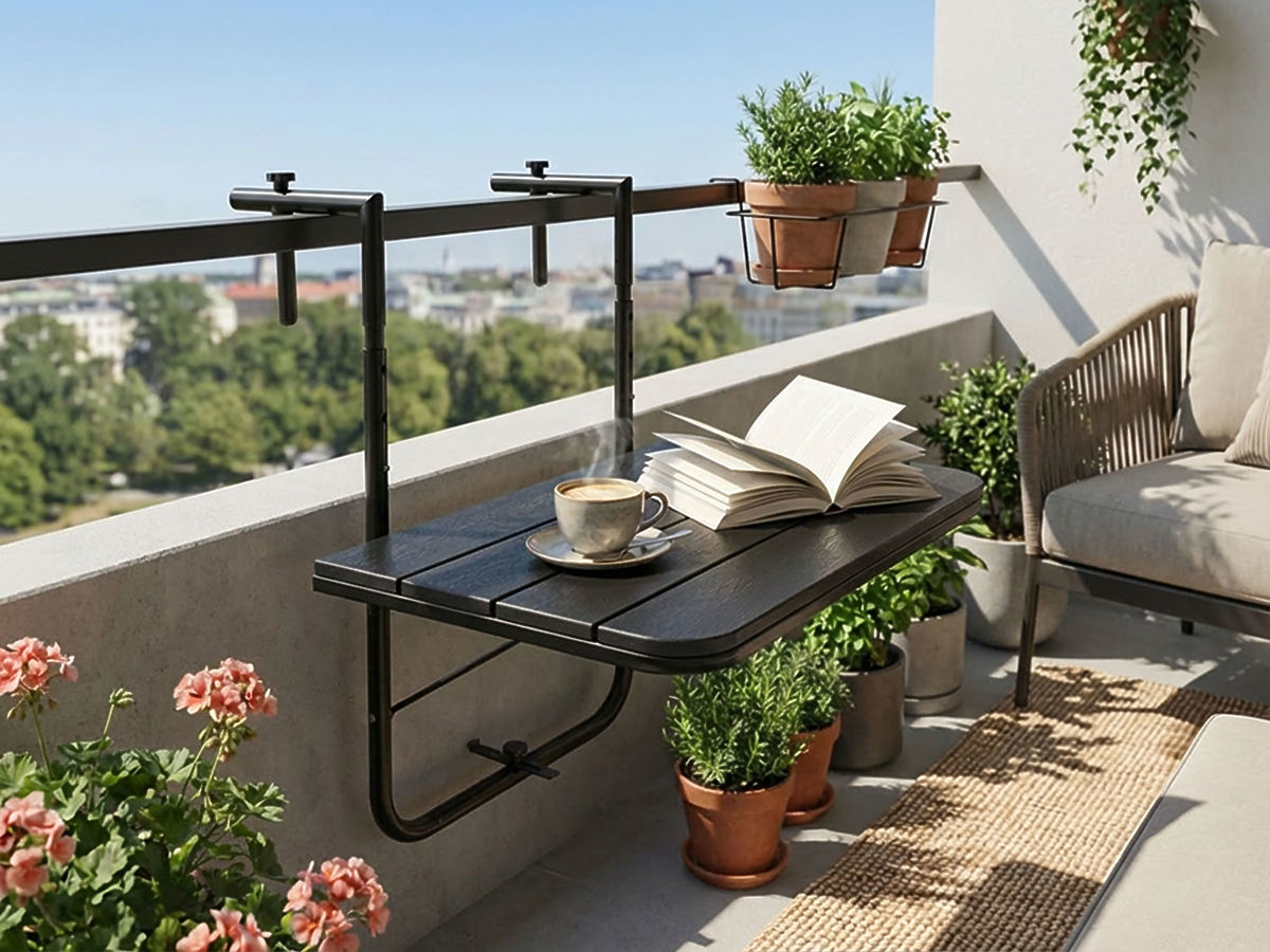 ☀️Tavolino da balcone Aretto nero – Tavolino funzionale per caffè e relax☀️