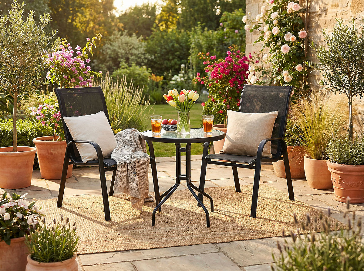 Modello: PALMA | Contenuto del set: tavolo + 2 sedie | Uso: balcone, terrazza, giardino