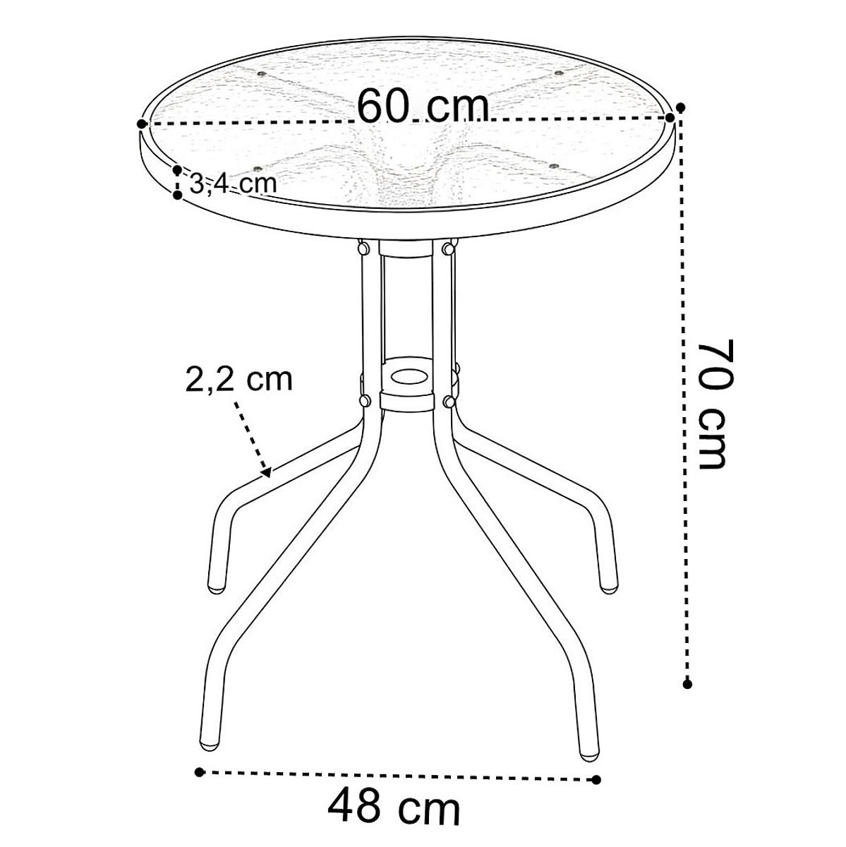 Diametro del piano: 60 cm