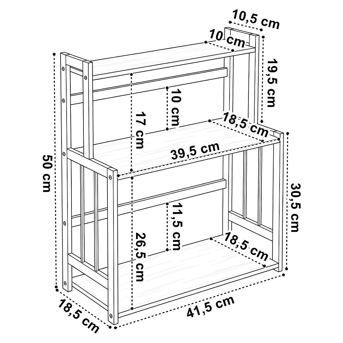 Larghezza del ripiano: 41,5 cm