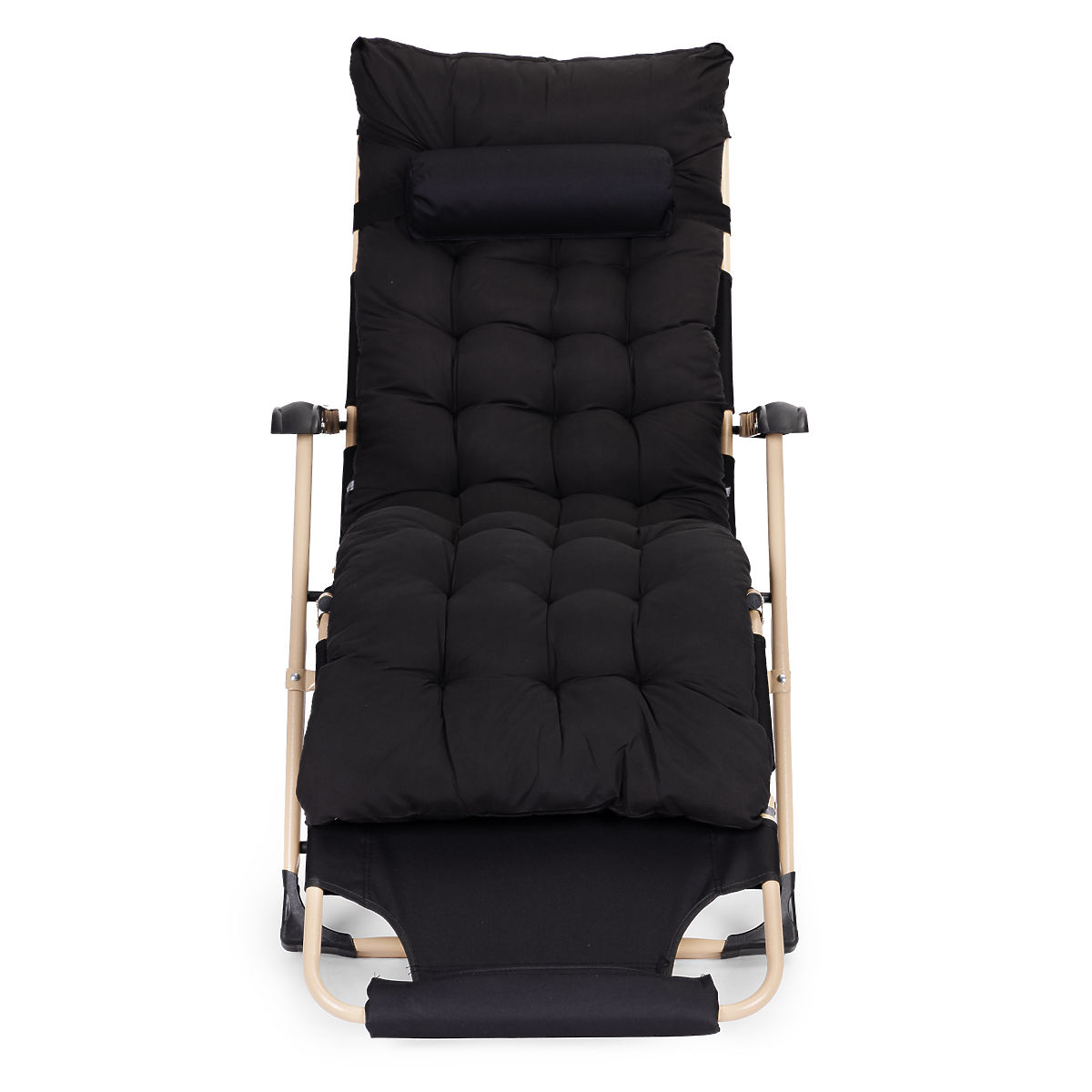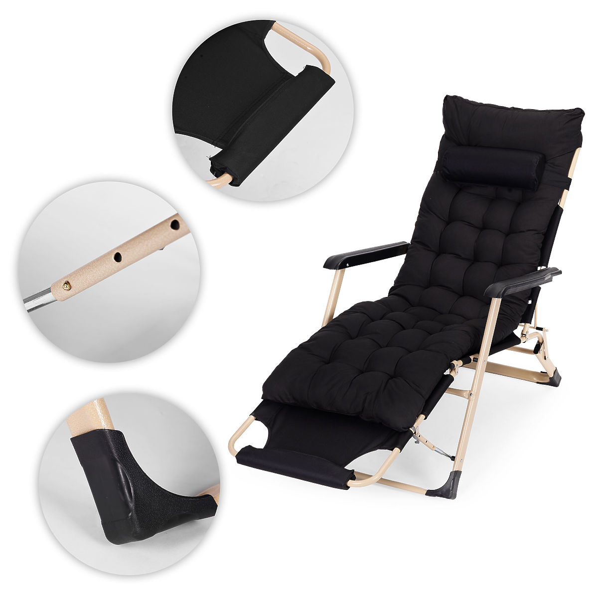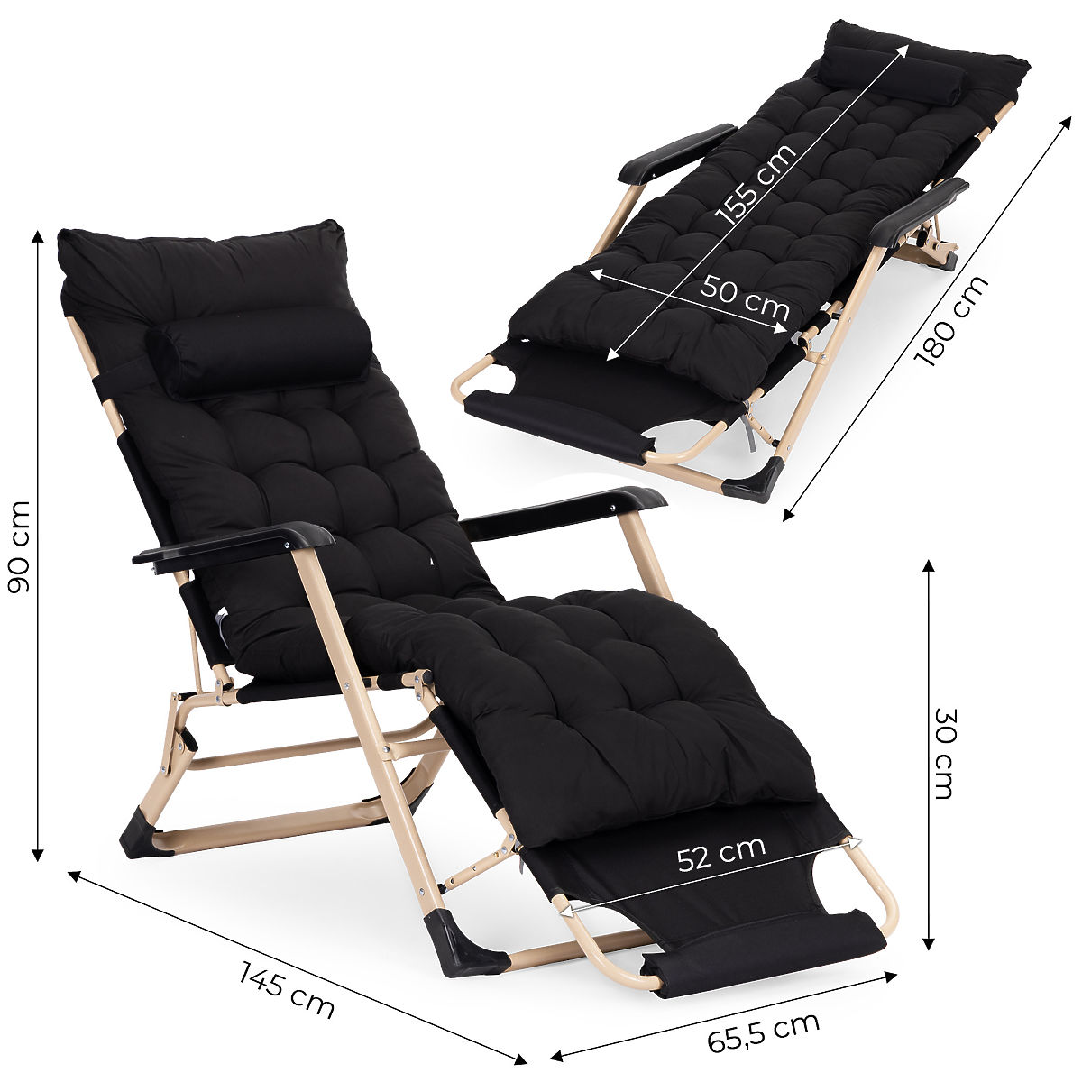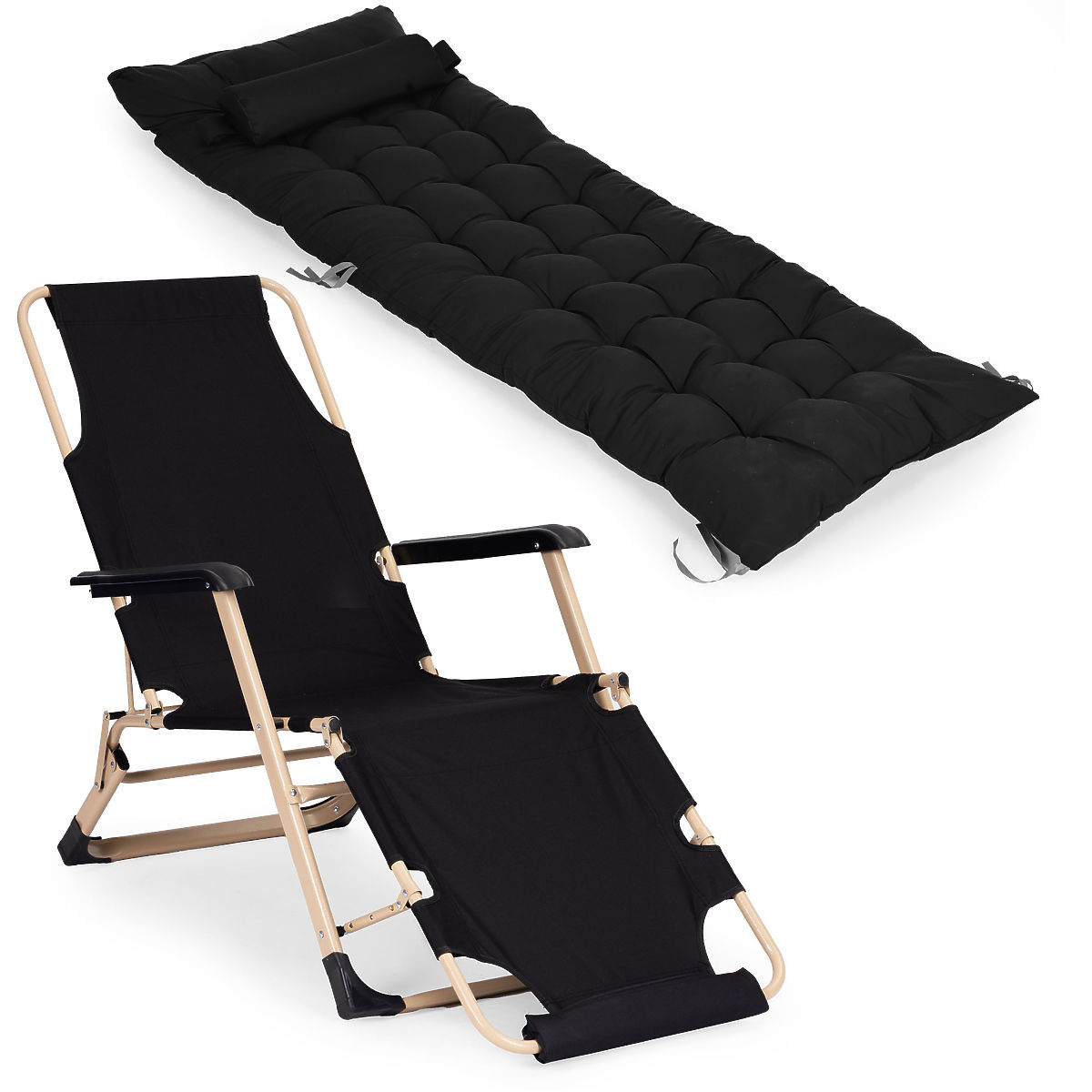 Lettino da giardino 2 in 1 con cuscino e poggiapiedi regolabile, nero, telaio dorato. .. altro