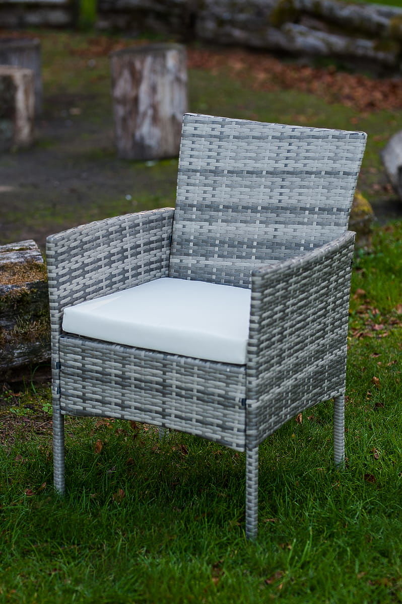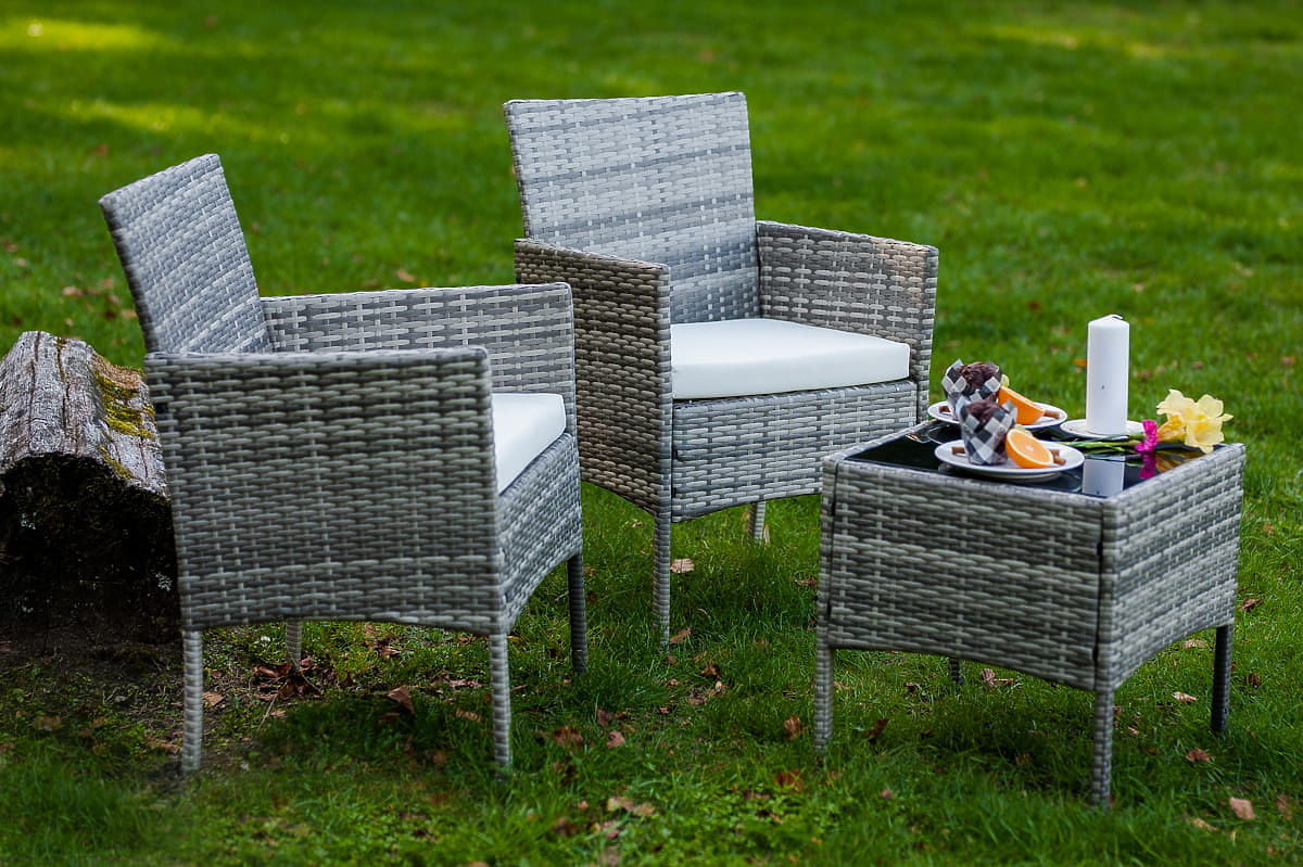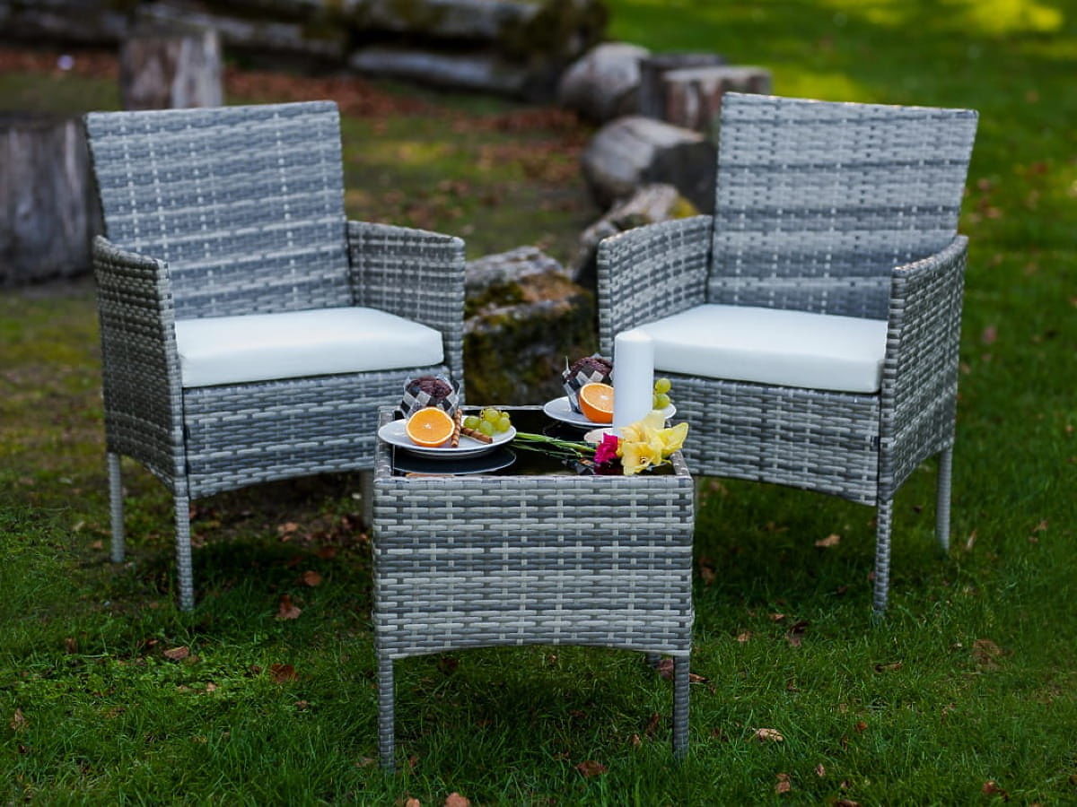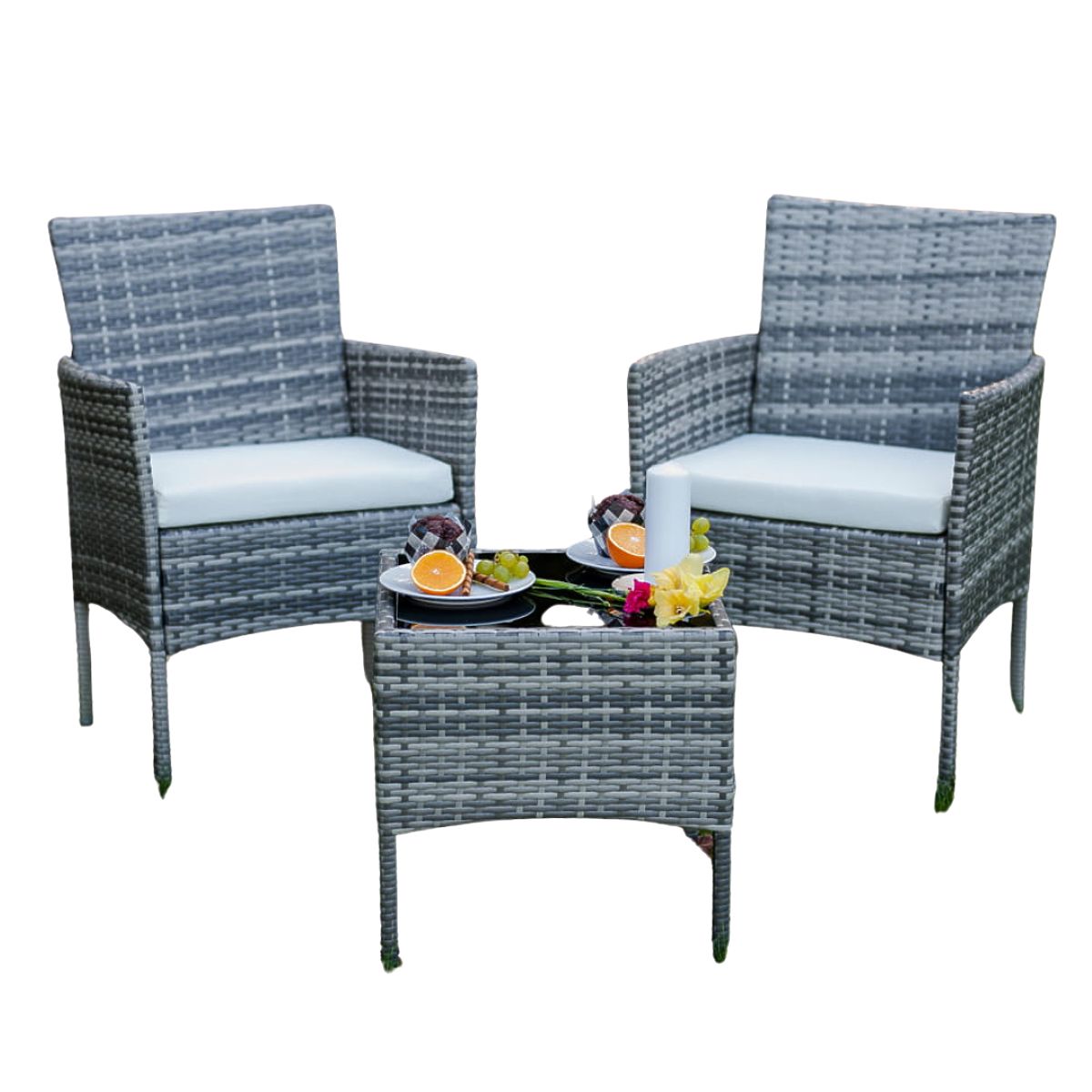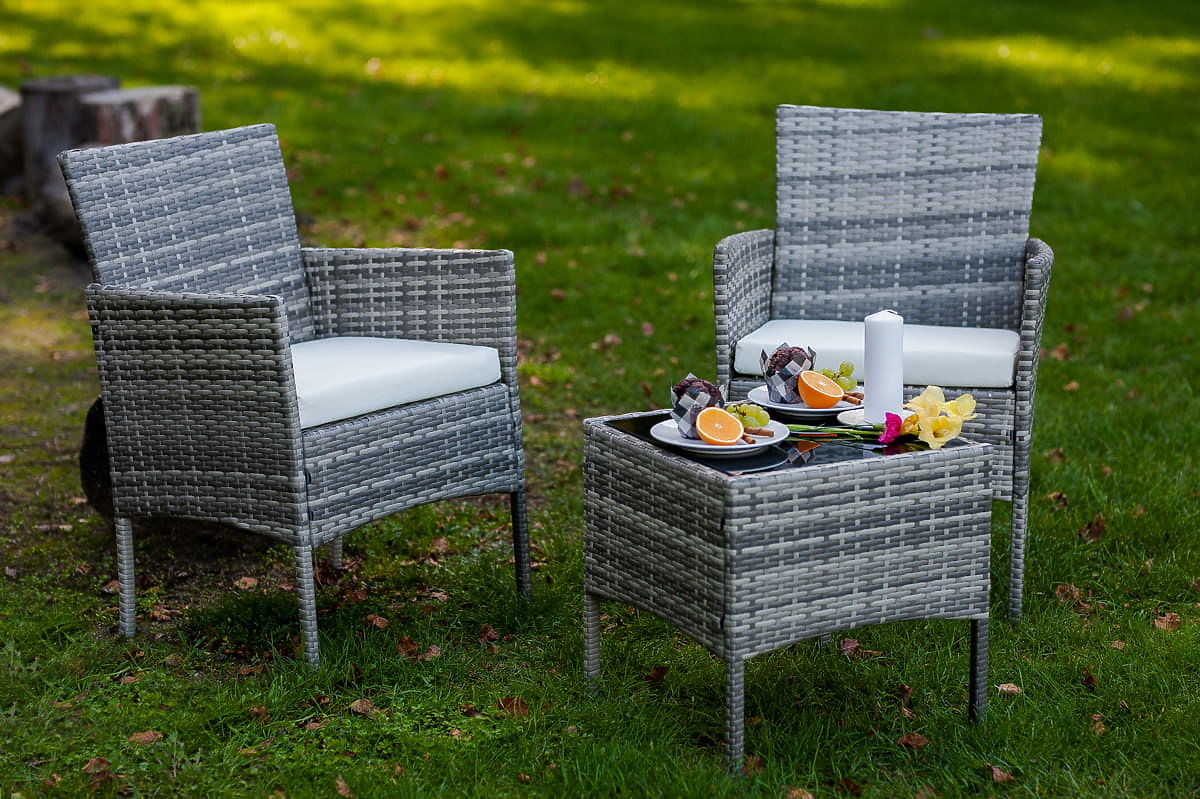 Set di mobili da balcone (2 x poltrona + tavolino) SANO in rattan sintetico grigio