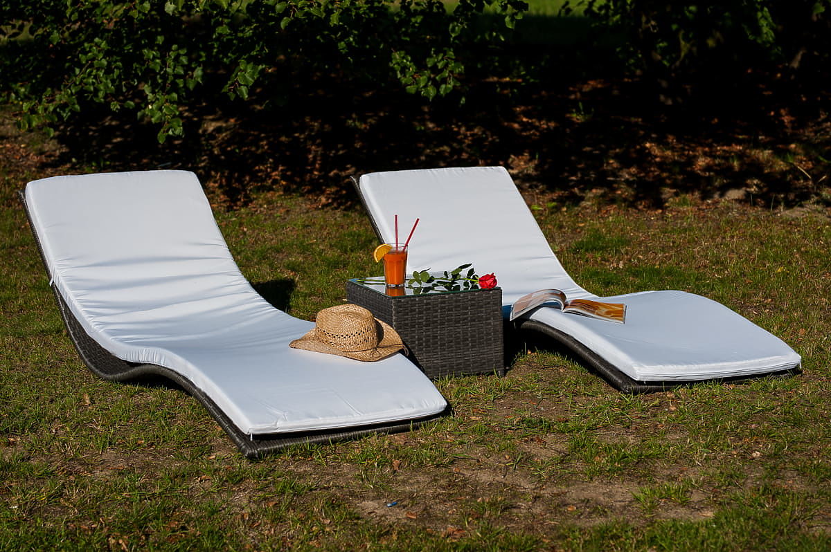 Set di lettini con tavolino SUCCESSO in tecnorattan grigio