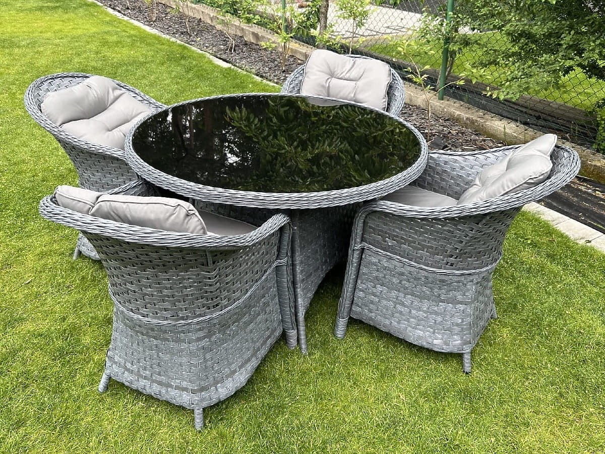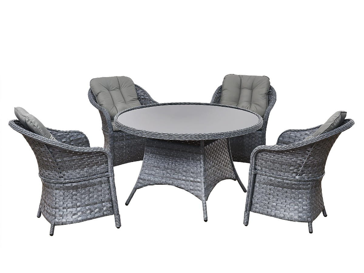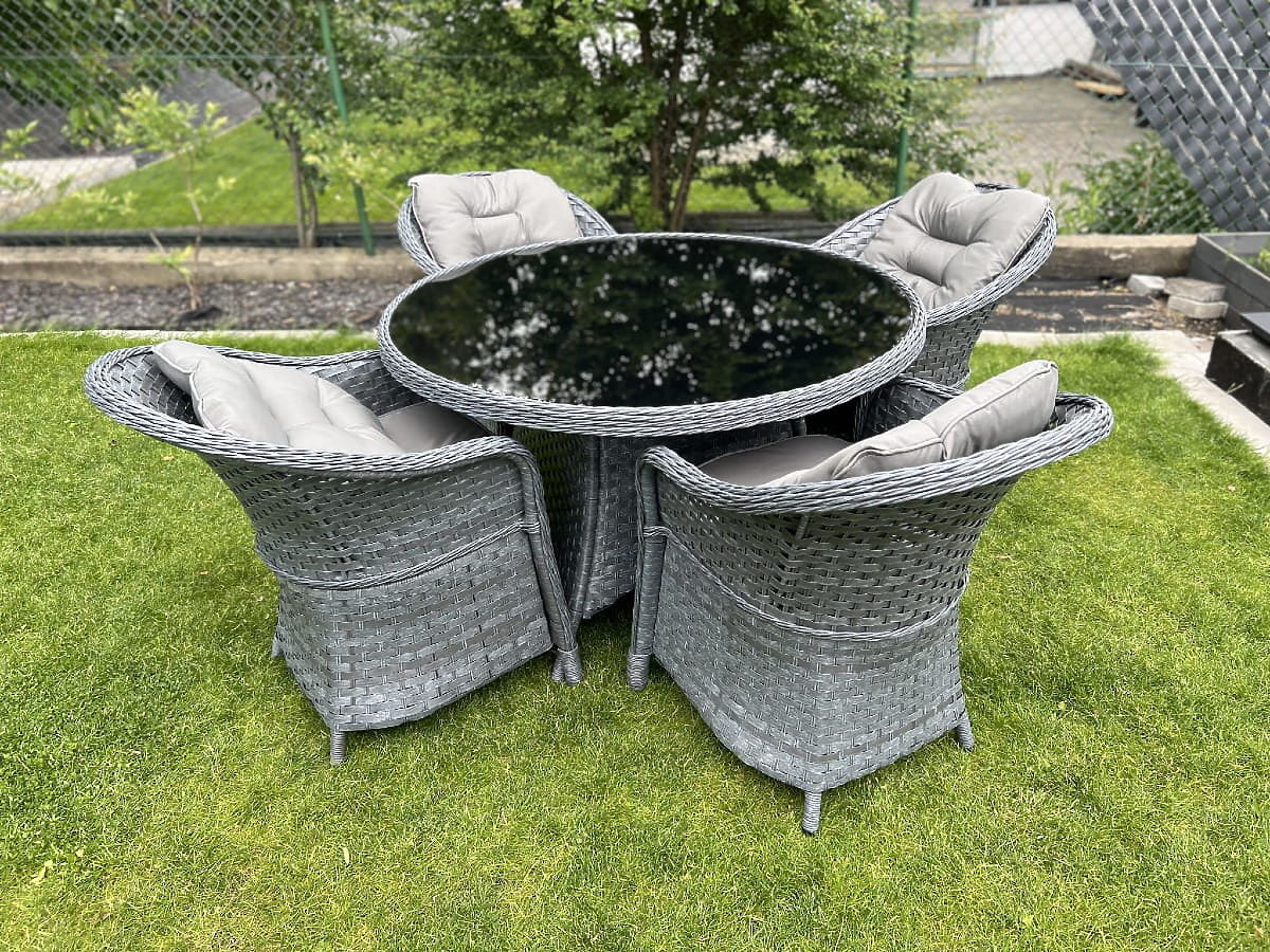 Set da pranzo in tecnorattan (tavolo rotondo + 4 poltrone) MODERNO grigio
