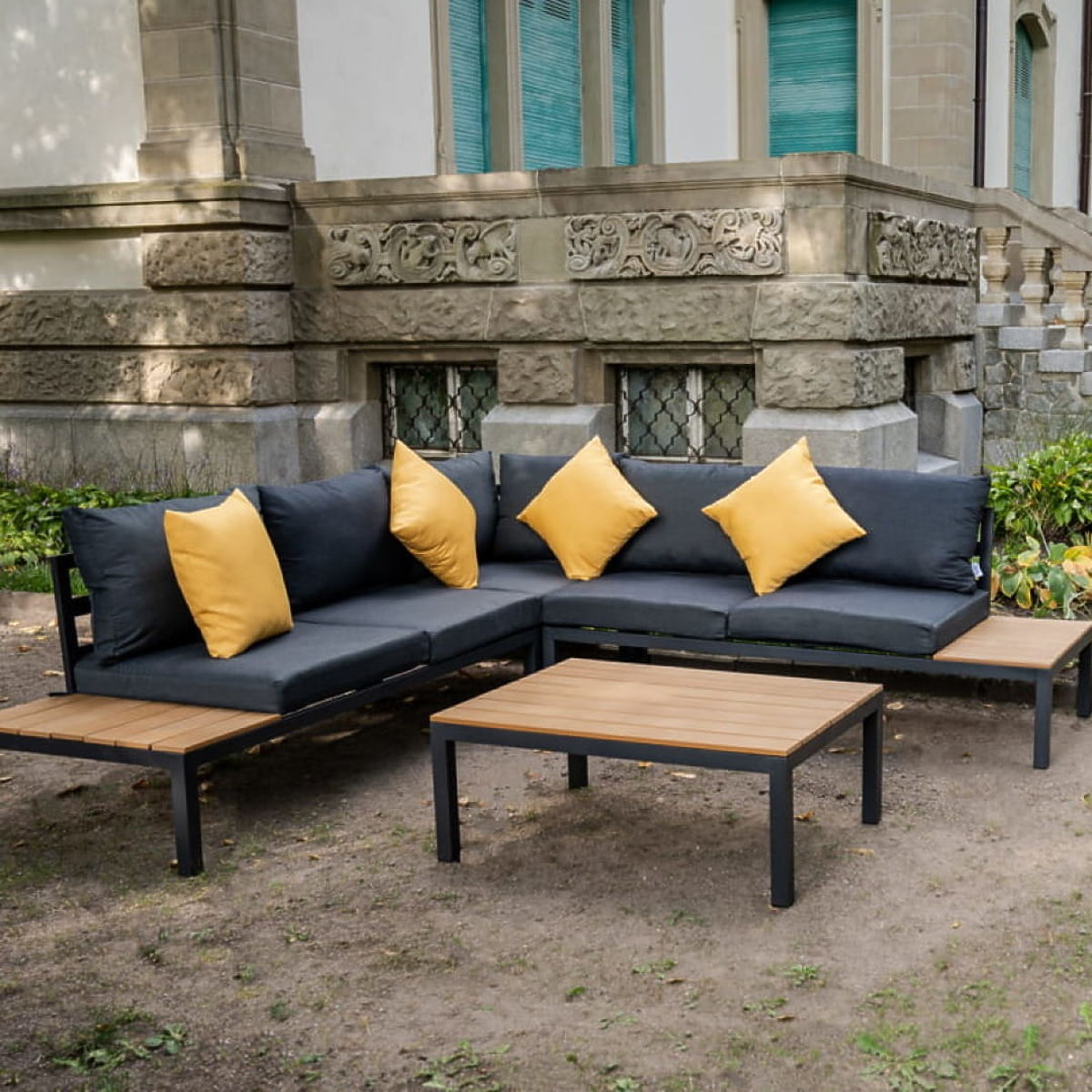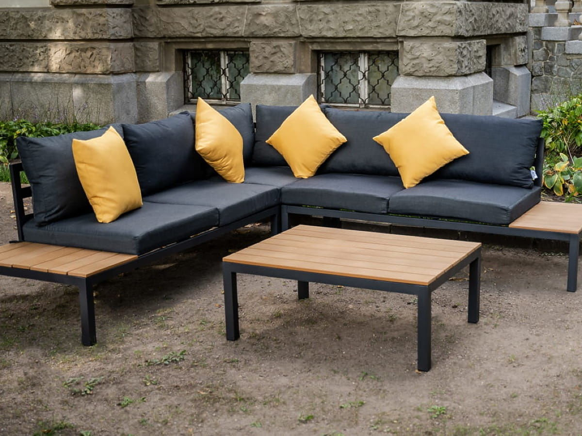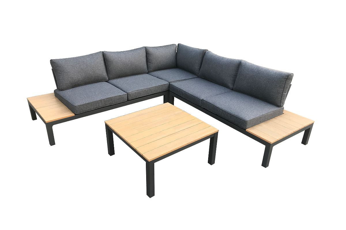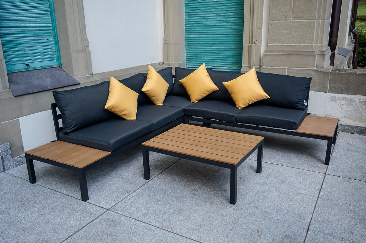 Grande set angolare in alluminio con tavolino MASSIMO nero